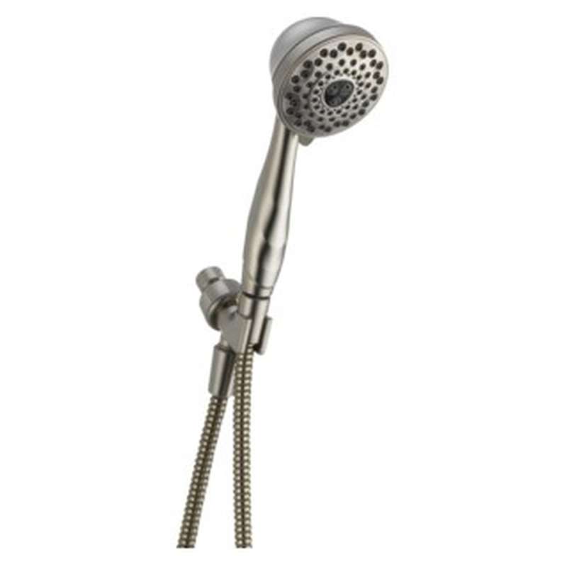 Experience a better shower with the control and flexibility of a Delta hand shower. Great for showering yourself or your loved ones and pets, as well as for keeping your shower and tub clean. While other products may gather unsightly mineral build-up over time, Delta soft rubber Touch-Clean spray holes allow any mineral residue to simply be wiped away for an instantly refreshed look – with no need for soaking or the aid of chemical cleaners. The pause setting gives you ample space for shaving, lathering and other shower tasks, then easily restarts the water with the temperature where you left off. This spray setting helps you conserve water, so you can worry less about depleting your supply of hot water - and you help the environment too. Delta WaterSense labeled faucets, showers and toilets use at least 20% less water than the industry standard—saving you money without compromising performance.