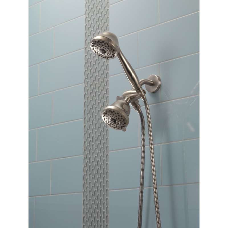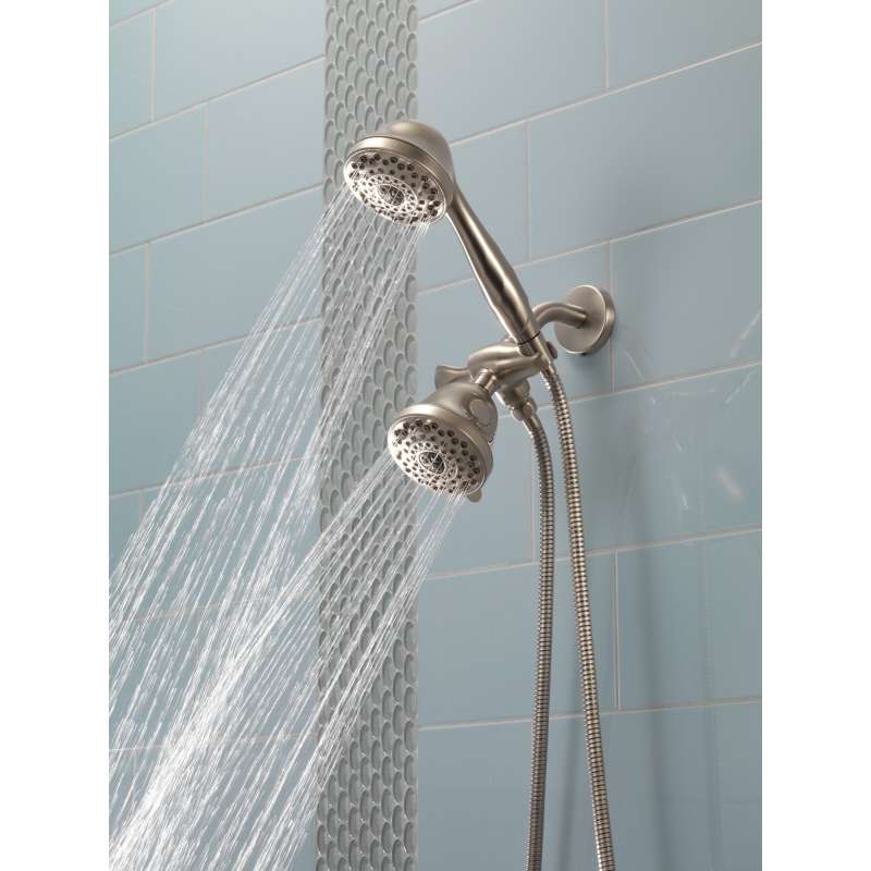 Experience a better shower with the control and flexibility of a Delta hand shower. Great for showering yourself or your loved ones and pets, as well as for keeping your shower and tub clean. While other products may gather unsightly mineral build-up over time, Delta soft rubber Touch-Clean spray holes allow any mineral residue to simply be wiped away for an instantly refreshed look – with no need for soaking or the aid of chemical cleaners. The pause setting gives you ample space for shaving, lathering and other shower tasks, then easily restarts the water with the temperature where you left off. This spray setting helps you conserve water, so you can worry less about depleting your supply of hot water - and you help the environment too. Delta WaterSense labeled faucets, showers and toilets use at least 20% less water than the industry standard—saving you money without compromising performance.