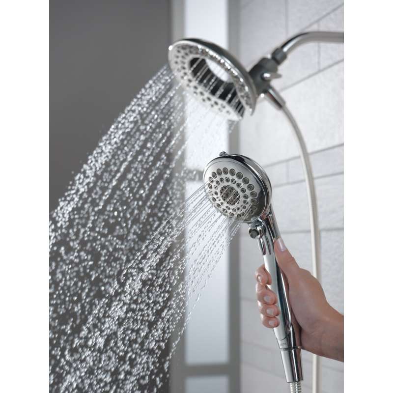 The Delta In2ition Two-in-One Shower features a detachable hand shower which can be used separately from or simultaneously with the shower head. This integrated dual-functionality gives you maximum flexibility without sacrificing warmth, as you can choose to have water streaming from the shower head only, the hand shower only or both the shower head and hand shower at once. While other products may gather unsightly mineral build-up over time, Delta soft rubber Touch-Clean spray holes allow any mineral residue to simply be wiped away for an instantly refreshed look – with no need for soaking or the aid of chemical cleaners. The pause setting gives you ample space for shaving, lathering and other shower tasks, then easily restarts the water with the temperature where you left off. This spray setting helps you conserve water, so you can worry less about depleting your supply of hot water - and you help the environment too. Delta WaterSense labeled faucets, showers and toilets use at least 20% less water than the industry standard—saving you money without compromising performance. Create a luxurious shower experience with a Delta hand shower/shower head combination. Whether you're remodeling your space or upgrading your existing setup, our hand shower/shower head combos will give you more flexibility and coverage in a variety of stunning styles.