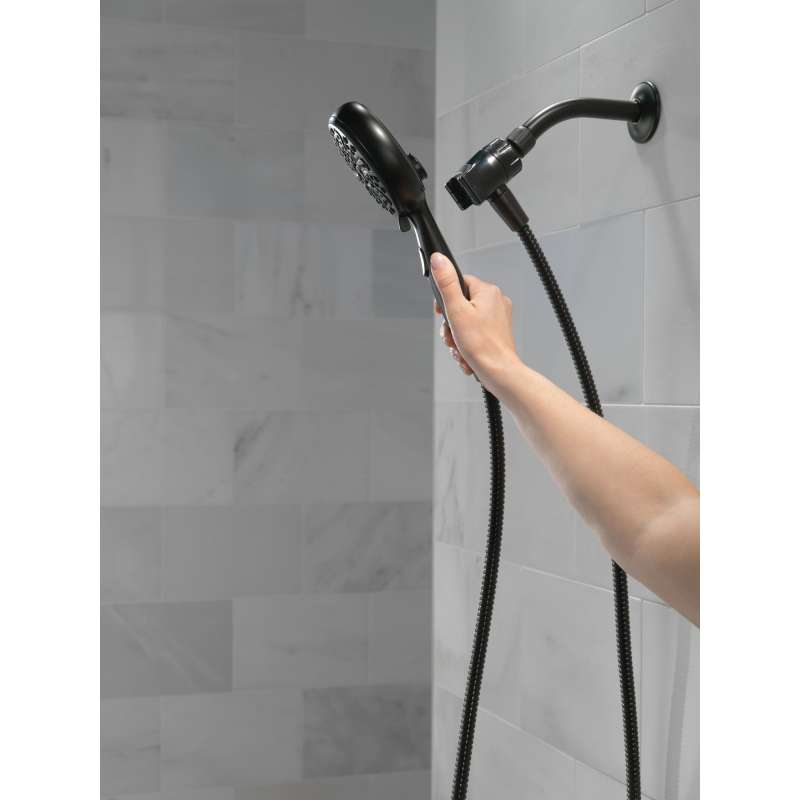 Experience a better shower with the control and flexibility of a Delta hand shower. Great for showering yourself or your loved ones and pets, as well as for keeping your shower and tub clean. SureDock Magnetic Hand Showers bring reliable docking within reach. An integrated magnet on the back of the hand shower snaps your hand shower into place and holds it there, so it stays docked when not in use and doesn’t droop over time. While other products may gather unsightly mineral build-up over time, Delta soft rubber Touch-Clean spray holes allow any mineral residue to simply be wiped away for an instantly refreshed look — with no need for soaking or the aid of chemical cleaners. The pause setting gives you ample space for shaving, lathering and other shower tasks, without worrying about overspray or water waste. This spray setting helps you conserve water, so you can worry less about depleting your supply of hot water — and you help the environment too. Delta WaterSense labeled faucets, showers and toilets use at least 20% less water than the industry standard — helping you save water without compromising performance.