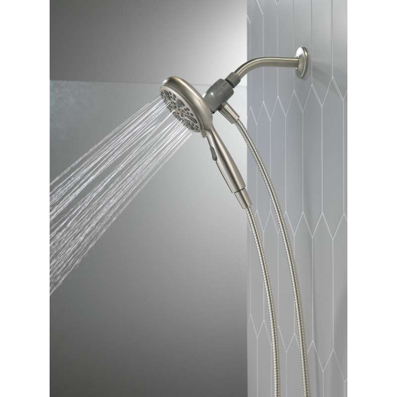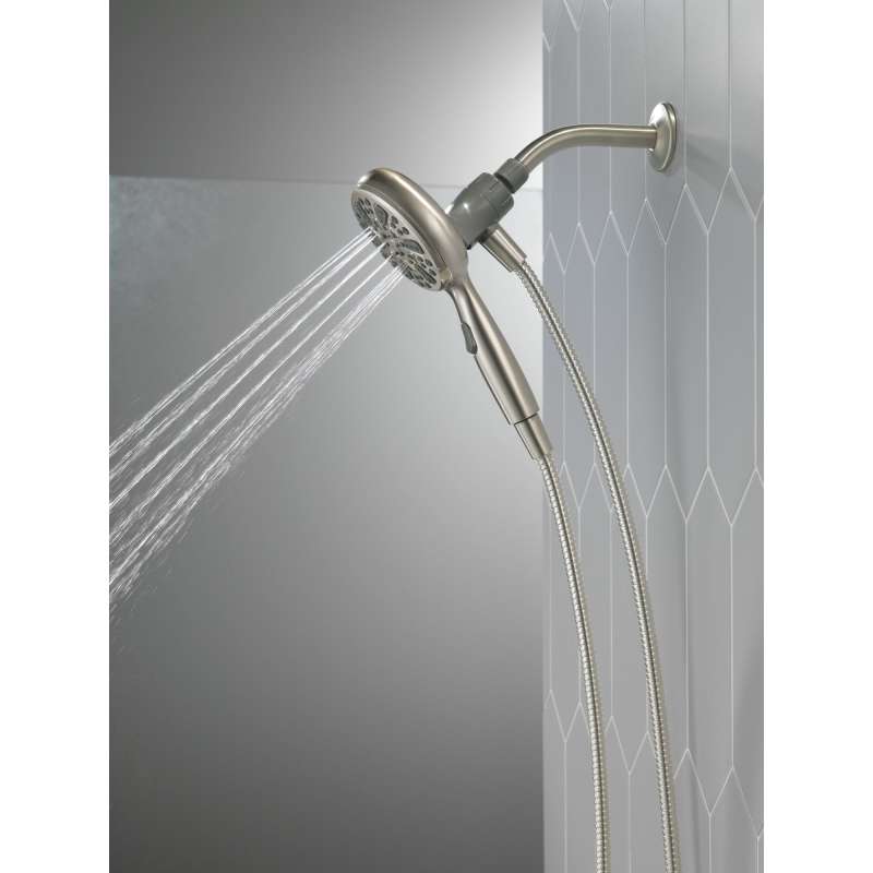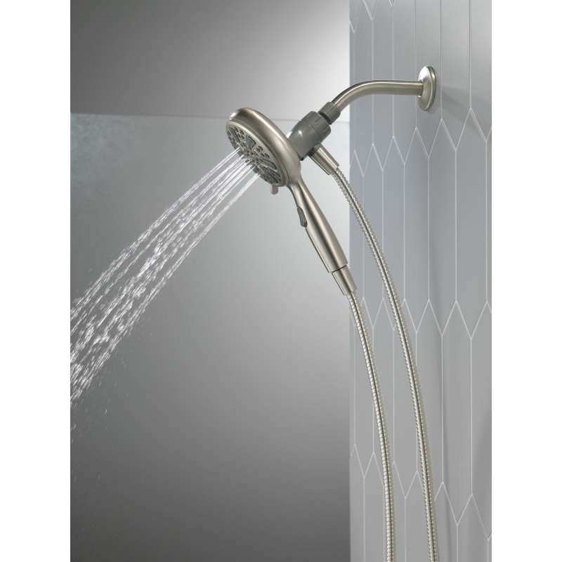Experience a better shower with the control and flexibility of a Delta hand shower. Great for showering yourself or your loved ones and pets, as well as for keeping your shower and tub clean. SureDock Magnetic Hand Showers bring reliable docking within reach. An integrated magnet on the back of the hand shower snaps your hand shower into place and holds it there, so it stays docked when not in use and doesn’t droop over time. While other products may gather unsightly mineral build-up over time, Delta soft rubber Touch-Clean spray holes allow any mineral residue to simply be wiped away for an instantly refreshed look — with no need for soaking or the aid of chemical cleaners. The pause setting gives you ample space for shaving, lathering and other shower tasks, without worrying about overspray or water waste. This spray setting helps you conserve water, so you can worry less about depleting your supply of hot water — and you help the environment too. Delta WaterSense labeled faucets, showers and toilets use at least 20% less water than the industry standard — helping you save water without compromising performance.