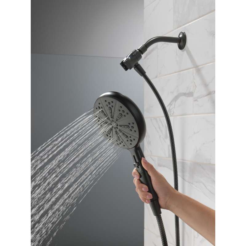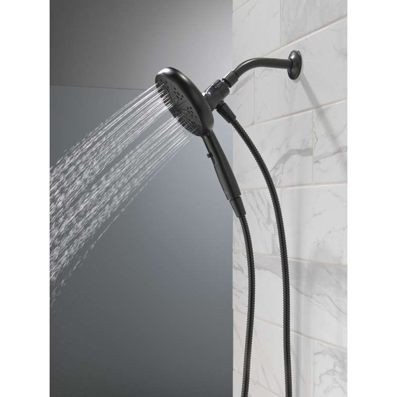 SureDock Magnetic Hand Showers bring reliable docking within reach. An integrated magnet on the back of the hand shower snaps your hand shower into place and holds it there, so it stays docked when not in use and doesn’t droop over time. While other products may gather unsightly mineral buildup over time, soft rubber Touch-Clean spray holes allow any mineral residue to simply be wiped away for an instantly refreshed look — with no need for soaking or the aid of chemical cleaners. The pause setting gives you ample space for shaving, lathering and other shower tasks, then easily restarts the water with the temperature where you left off. Delta WaterSense labeled faucets, showers and toilets use at least 20% less water than the industry standard — helping you save water without compromising performance. You can install with confidence, knowing Delta hand showers are backed by our Lifetime Limited Warranty.
