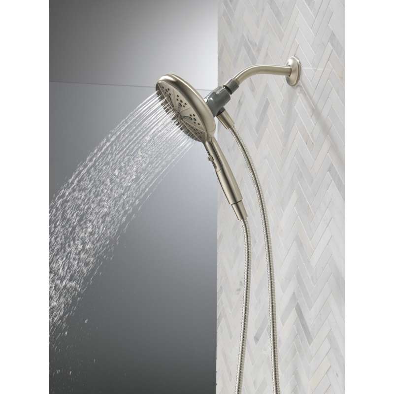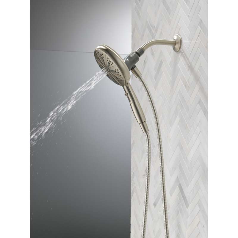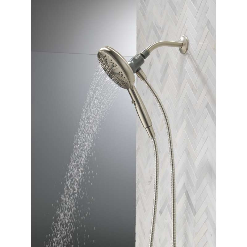 SureDock Magnetic Hand Showers bring reliable docking within reach. An integrated magnet on the back of the hand shower snaps your hand shower into place and holds it there, so it stays docked when not in use and doesn’t droop over time. While other products may gather unsightly mineral buildup over time, soft rubber Touch-Clean spray holes allow any mineral residue to simply be wiped away for an instantly refreshed look — with no need for soaking or the aid of chemical cleaners. The pause setting gives you ample space for shaving, lathering and other shower tasks, then easily restarts the water with the temperature where you left off. Delta WaterSense labeled faucets, showers and toilets use at least 20% less water than the industry standard — helping you save water without compromising performance. You can install with confidence, knowing Delta hand showers are backed by our Lifetime Limited Warranty.