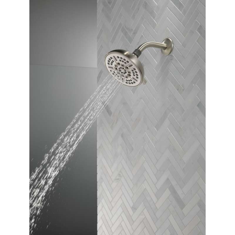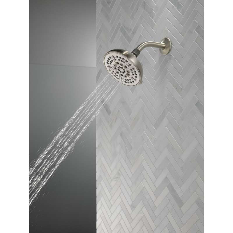 Replacing your shower head is one of the quickest, simplest upgrades you can make to your shower. This shower head features eight spray settings and installs in less than 20 minutes - no special tools required. While other products may gather unsightly mineral buildup over time, Delta soft rubber Touch-Clean spray holes allow any mineral residue to simply be wiped away for an instantly refreshed look — with no need for soaking or the aid of chemical cleaners. The pause setting gives you ample space for shaving, lathering and other shower tasks, then easily restarts the water with the temperature where you left off. This spray setting helps you conserve water, so you can help the environment and worry less about depleting your supply of hot water. You can install with confidence, knowing Delta products are backed by our Lifetime Limited Warranty.
