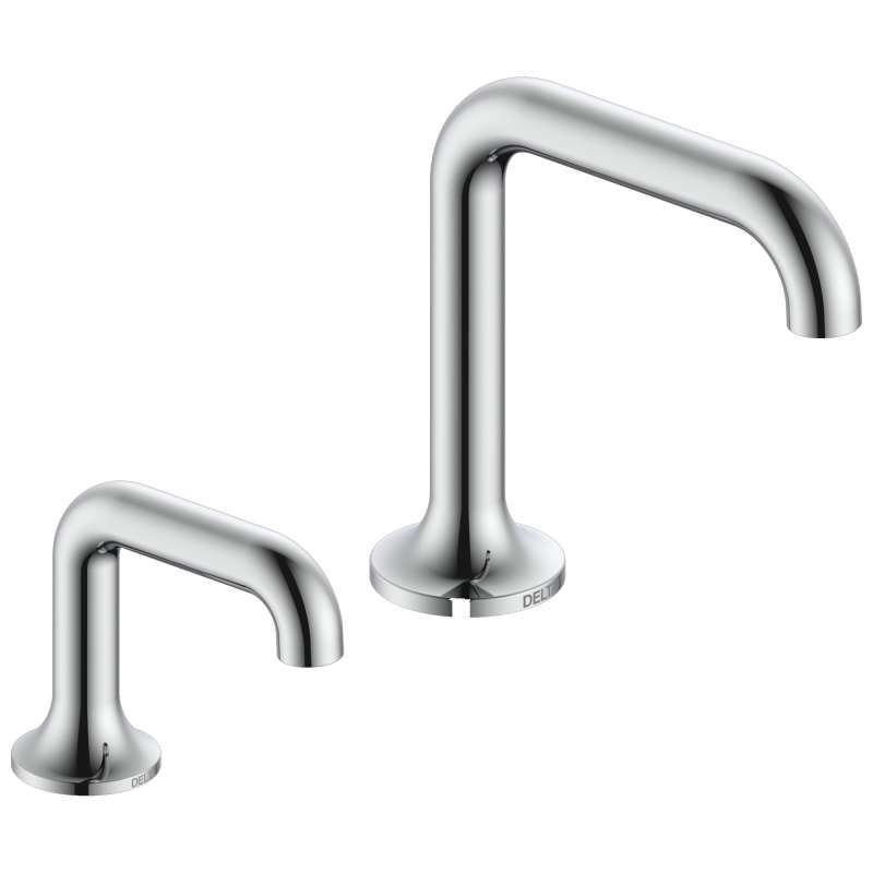 Electronic lavatory faucet with soap dispenser from the Driftex collection of the Architectural Design series. The entire body of the faucet and soap dispenser acts as a sensor as it features proximity sensing technology. These are ideal for high-traffic environments, providing superior vandal resistance, and ease of cleaning and maintenance while providing an aesthetic appeal.