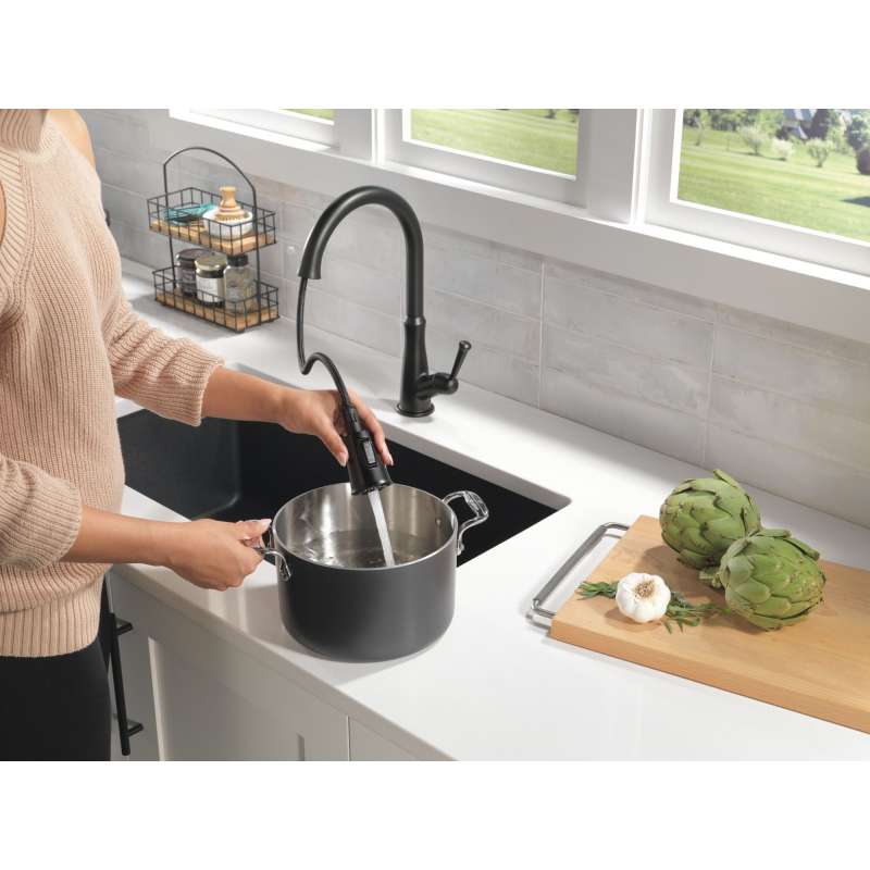 • 9110-BL-DST Westville Single Handle Pull Down Kitchen Faucet, Matte Black Matte Black