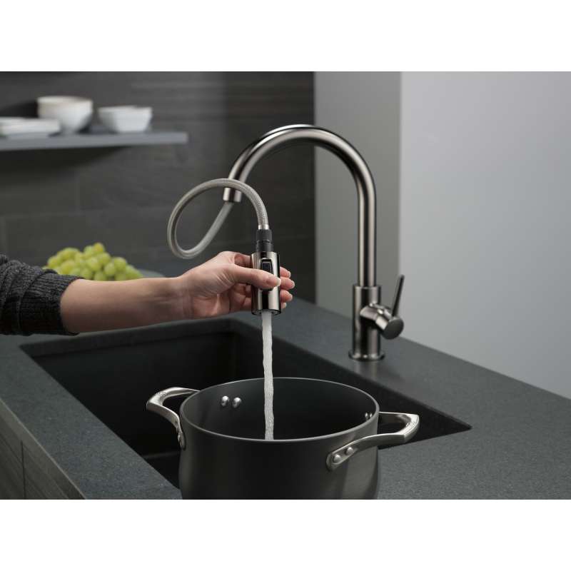 • 9159T-KS-DST Trinsic Single Handle Pull Down Kitchen Faucet with Touch, Black Stainless Black Stainless