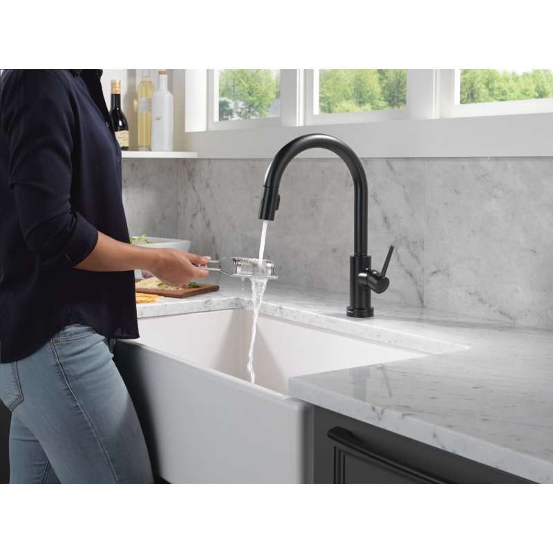 The sleek elegance of modern design is embodied in the trinsic kitchen collection. Life moves fast, touchless technology keeps up. Delta touch2o faucets with touchless technology help keep germs and mess off your kitchen faucet and provides easy water control 3 ways: simply place your hand near the faucet, tap the faucet surface, or use standard handle activation. Delta voiceiq technology pairs with your connected home device to give you exactly the amount of water you need with features like metered dispensing and custom container commands. Simply ask your faucet to dispense one cup, six ounces, a gallon or just about any other amount you could need. The tempsense led light changes color to alert you to the water’s temperature and eliminate any possible surprises or discomfort. Delta faucets with diamond seal technology perform like new for life with a patented design which reduces leak points, is less hassle to install and lasts twice as long as the industry standard. You can install with confidence, knowing that delta faucets are backed by our lifetime limited warranty.