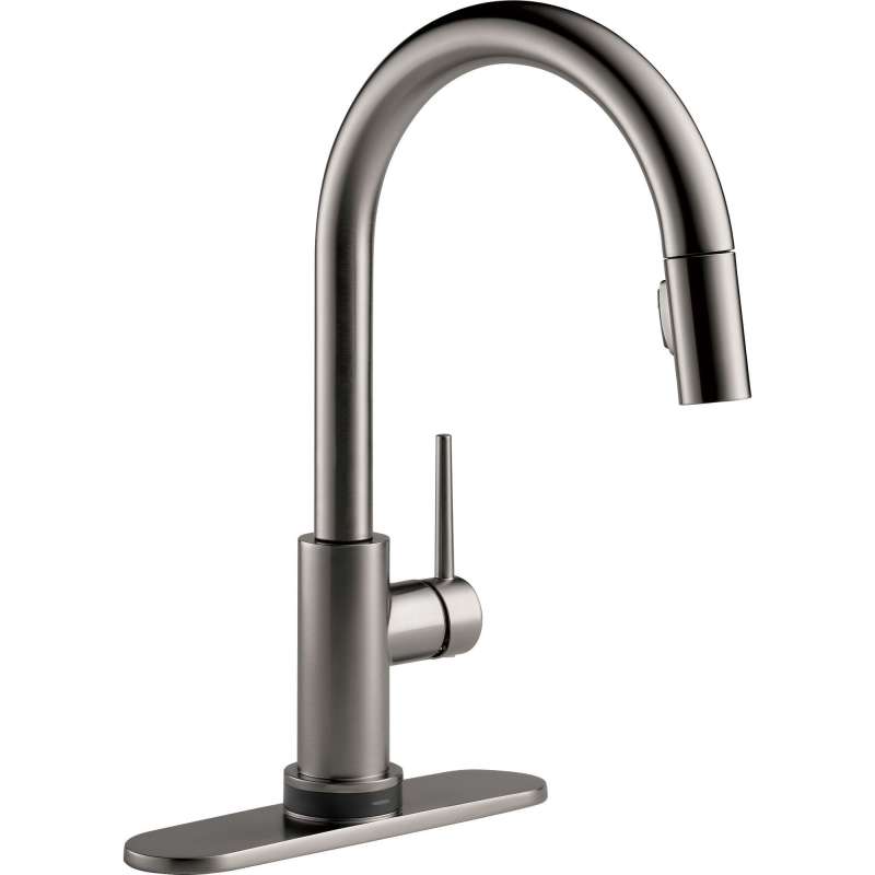 • 9159TLV-KS-DST Trinsic 11.38-in x 4.19-in x 16.19-in VoiceIQ Kitchen Faucet with Touch2O with Touchless Technology, Black Stainless Black Stainless
