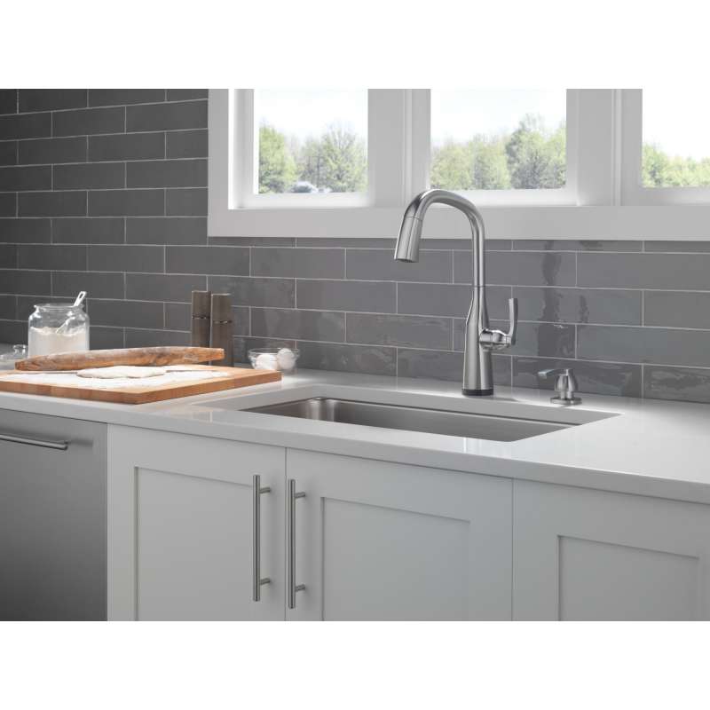 With subtly upturned spout and handles, stryke kitchen collection faucets radiate confidence and include thoughtful innovations to enhance everyday use. Touch it on. Touch it off. Whether you have two full hands or 10 messy fingers, delta touch2o technology helps keep your kitchen faucet clean, even when your hands aren’t. A simple touch anywhere on the spout or handle with your wrist or forearm activates the flow of water at the temperature where your handle is set. The delta tempsense led light changes color to alert you to the water’s temperature and eliminates any possible surprises or discomfort. You can install with confidence, knowing that delta kitchen faucets are backed by our lifetime limited warranty. Electronic parts are backed by our 5-year electronic parts warranty.