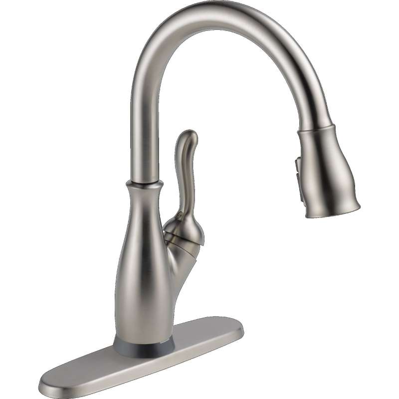 Traditional styling and modern functionality come together for a timeless look with the leland kitchen collection. Life moves fast, touchless technology keeps up. Delta touch2o faucets with touchless technology help keep germs and mess off your kitchen faucet and provides easy water control 3 ways: simply place your hand near the faucet, tap the faucet surface, or use standard handle activation. Delta voiceiq technology pairs with your connected home device to give you exactly the amount of water you need with features like metered dispensing and custom container commands. Simply ask your faucet to dispense one cup, six ounces, a gallon or just about any other amount you could need. The tempsense led light changes color to alert you to the water’s temperature and eliminate any possible surprises or discomfort. Spotshield technology helps to keep your kitchen faucet cleaner, longer by resisting water spots and fingerprints. Shieldspray technology cleans with laser-like precision while containing mess and splatter. A concentrated jet powers away stubborn messes while an innovative shield of water contains splatter and clears off the mess, so you can spend less time soaking, scrubbing and shirt swapping. Delta faucets with diamond seal technology perform like new for life with a patented design which reduces leak points, is less hassle to install and lasts twice as long as the industry standard. You can install with confidence, knowing that delta faucets are backed by our lifetime limited warranty.