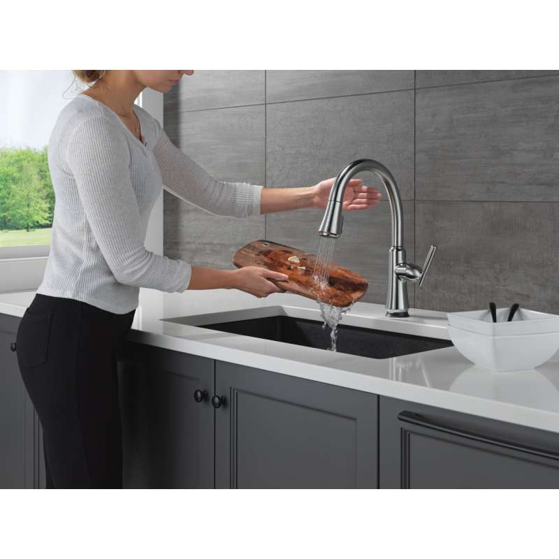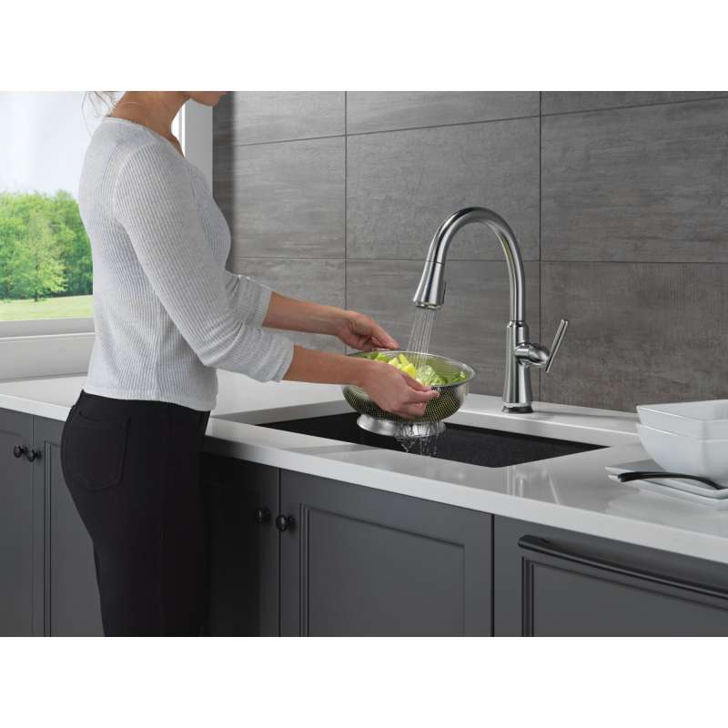 A contemporary take on traditional styling, the coranto kitchen collection brings everyday refinement to a space with subtle design details. Life moves fast, touchless technology keeps up. Delta touch2o faucets with touchless technology help keep germs and mess off your kitchen faucet and provides easy water control 3 ways: simply place your hand near the faucet, tap the faucet surface, or use standard handle activation. The tempsense led light changes color to alert you to the water’s temperature and eliminate any possible surprises or discomfort. Magnatite docking uses a powerful integrated magnet to pull your faucet spray wand precisely into place and hold it there so it stays docked when not in use. Shieldspray technology cleans with laser-like precision while containing mess and splatter. A concentrated jet powers away stubborn messes while an innovative shield of water contains splatter and clears off the mess, so you can spend less time soaking, scrubbing and shirt swapping. Delta faucets with diamond seal technology perform like new for life with a patented design which reduces leak points, is less hassle to install and lasts twice as long as the industry standard. You can install with confidence, knowing that delta faucets are backed by our lifetime limited warranty.