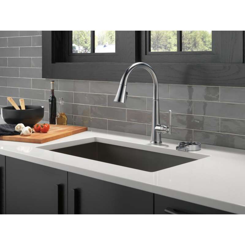 The defined ridges of the emmeline kitchen collection’s diamond-shaped spout cut a streamlined profile, balanced by captivating details that lend an elemental sense of old-world flair. Kitchen sink faucets with touch-clean spray holes allow you to easily wipe away calcium and lime build-up with the touch of a finger. Delta shieldspray technology cleans with laser-like precision while containing mess and splatter. A concentrated jet powers away stubborn messes while an innovative shield of water contains splatter and clears off the mess, so you can spend less time soaking, scrubbing and shirt swapping. Delta lumicoat finishes are guaranteed to resist water spots and mineral buildup and easily wipe clean without the need for cleaners or chemicals. The ultra-sleek surface repels liquids, resisting water spots and staying cleaner longer, so your faucet stays beautiful. Delta kitchen faucets with diamond seal technology perform like new for life with a patented design which reduces leak points, is less hassle to install and lasts twice as long as the industry standard. You can install with confidence, knowing that delta kitchen faucets are backed by our lifetime limited warranty.
