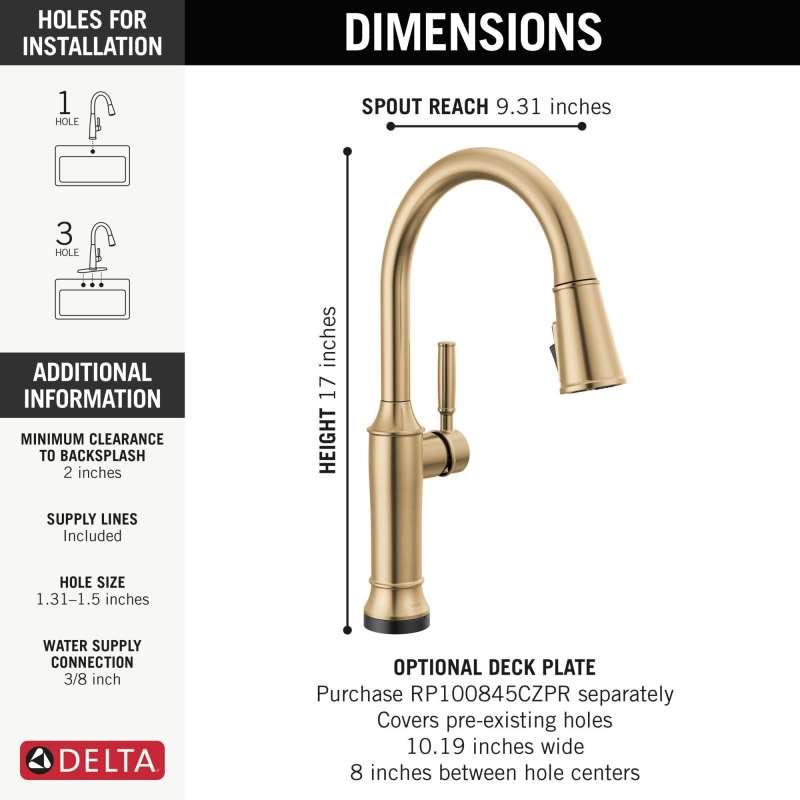 • Easy installation: DIY installation, with step-by step install videos on delta faucet’s youtube