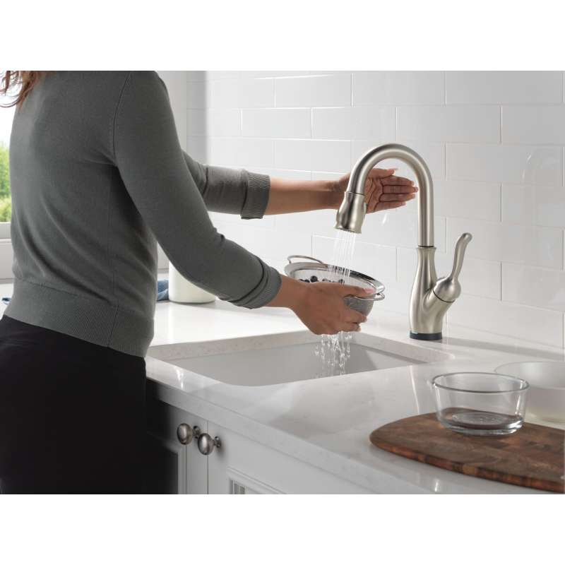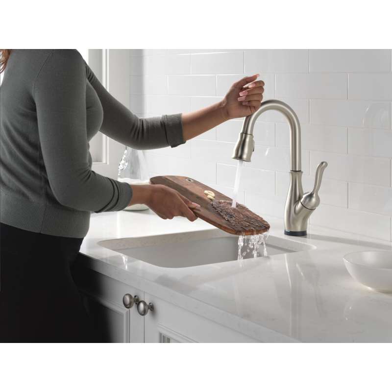 Traditional styling and modern functionality come together for a timeless look with the leland kitchen collection. Life moves fast, touchless technology keeps up. Delta touch2o faucets with touchless technology help keep germs and mess off your kitchen faucet and provides easy water control 3 ways: simply place your hand near the faucet, tap the faucet surface, or use standard handle activation. The tempsense led light changes color to alert you to the water’s temperature and eliminate any possible surprises or discomfort. Spotshield technology helps to keep your kitchen faucet cleaner, longer by resisting water spots and fingerprints. Magnatite docking uses a powerful integrated magnet to pull your faucet spray wand precisely into place and hold it there so it stays docked when not in use. Delta faucets with diamond seal technology perform like new for life with a patented design which reduces leak points, is less hassle to install and lasts twice as long as the industry standard. You can install with confidence, knowing that delta faucets are backed by our lifetime limited warranty.