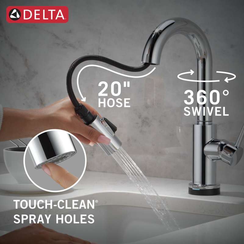 The sleek elegance of modern design is embodied in the trinsic kitchen collection. Life moves fast, touchless technology keeps up. Delta touch2o faucets with touchless technology help keep germs and mess off your kitchen faucet and provides easy water control 3 ways: simply place your hand near the faucet, tap the faucet surface, or use standard handle activation. The tempsense led light changes color to alert you to the water’s temperature and eliminate any possible surprises or discomfort. Magnatite docking uses a powerful integrated magnet to pull your faucet spray wand precisely into place and hold it there so it stays docked when not in use. Delta faucets with diamond seal technology perform like new for life with a patented design which reduces leak points, is less hassle to install and lasts twice as long as the industry standard. You can install with confidence, knowing that delta faucets are backed by our lifetime limited warranty.