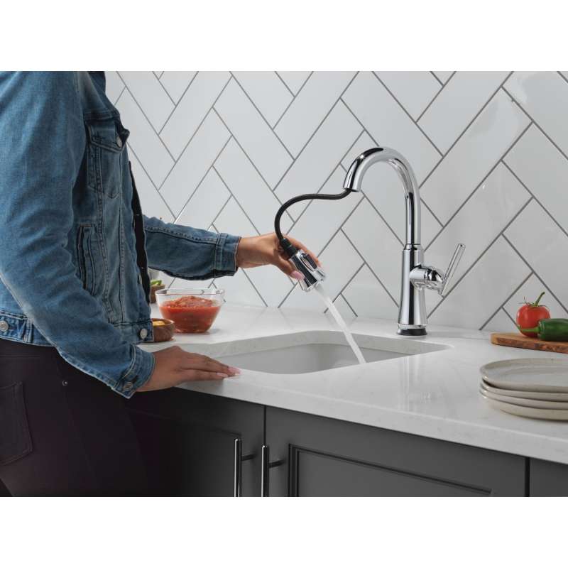 • 9979TL-DST Coranto 9.06-in x 4.63-in x 14.38-in Touch2O Bar and Prep Faucet with Touchless Technology, Chrome Chrome