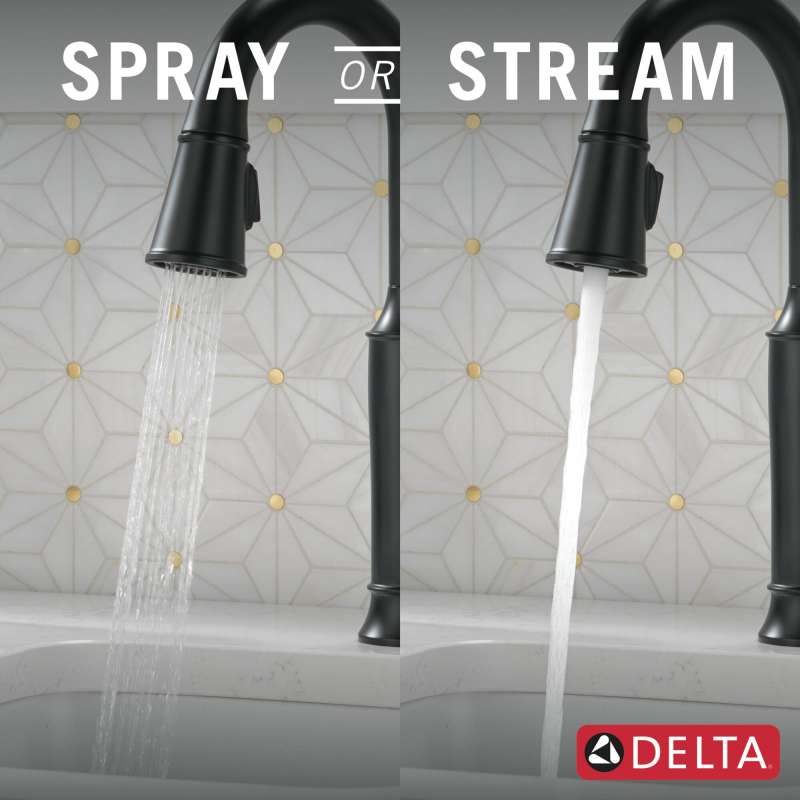 Command your kitchen with the symmetrical, statuesque design of the renaldi collection. The delta proclean kitchen spray provides a powerful, wide fan spray for quick and complete cleaning. Easily clean hard-to-reach places, help remove baked on messes and spray down your sink faster as the wide stream covers more surface area. Magnatite docking uses a powerful integrated magnet to set your pull down sprayer precisely into place and hold it there so it stays docked when not in use. Delta kitchen faucets with diamond seal technology perform like new for life with a patented design which reduces leak points, is less hassle to install and lasts twice as long as the industry standard. You can install with confidence, knowing that delta kitchen faucets are backed by our lifetime limited warranty.