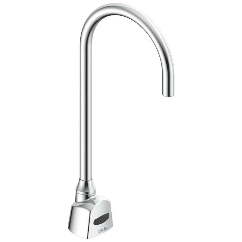 Introducing our high-performance faucet designed for efficiency and durability. This chrome-finished deck mount fixture boasts a flow rate of 1.5 gpm (5.7 L/min) with a smooth end outlet delivering a consistent laminar spray. The infrared sensor ensures touchless and hygienic operation, combining convenience with advanced technology. Operated by 4 “C” cell batteries, this faucet offers a wireless solution without compromising performance. The gooseneck standard spout (R5) measures 6-in (152 mm) in length and stands at 14.75-in (375 mm) high, providing both functionality and an elegant design. Supplied as trim parts only, including a 12-in (305 mm) stainless steel cover, driver board, solenoid, and hardwire converter, this faucet is versatile and easy to install. Crafted with a one-piece cast main body, this faucet provides durability, while the solenoid and controller are neatly housed in a recessed box, enhancing the fixture’s overall aesthetic appeal. Elevate your space with this reliable and stylish faucet that seamlessly integrates performance and sophistication.