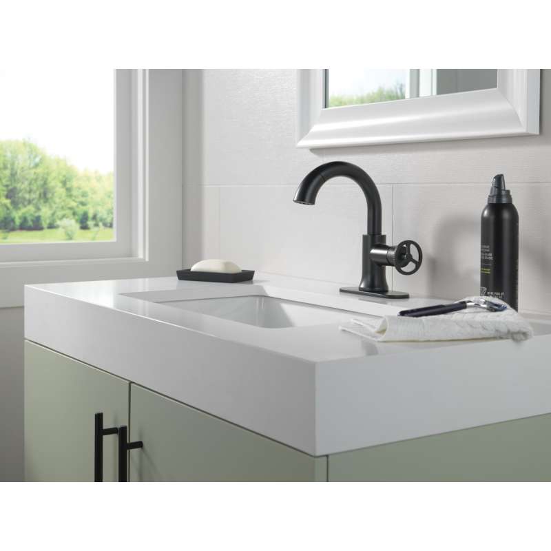 Inspired by the sleek elegance of modern european design, the trinsic bath collection with an industrial wheel handle completes the look of any contemporary bath. The pull-down spray wand features delta magnatite docking which uses a powerful integrated magnet to pull your faucet spray wand precisely into place and hold it there so it stays docked when not in use. The worry-free drain catch is a simple solution to the common problem of pills, jewelry or other valuables washing down the drain. Delta faucets with diamond seal technology perform like new for life with a patented design that reduces leak points, is less hassle to install and lasts twice as long as the industry standard. Delta watersense labeled faucets use at least 20% less water than the industry standard — helping you save water without compromising performance. You can install with confidence, knowing that delta faucets are backed by our lifetime limited warranty.