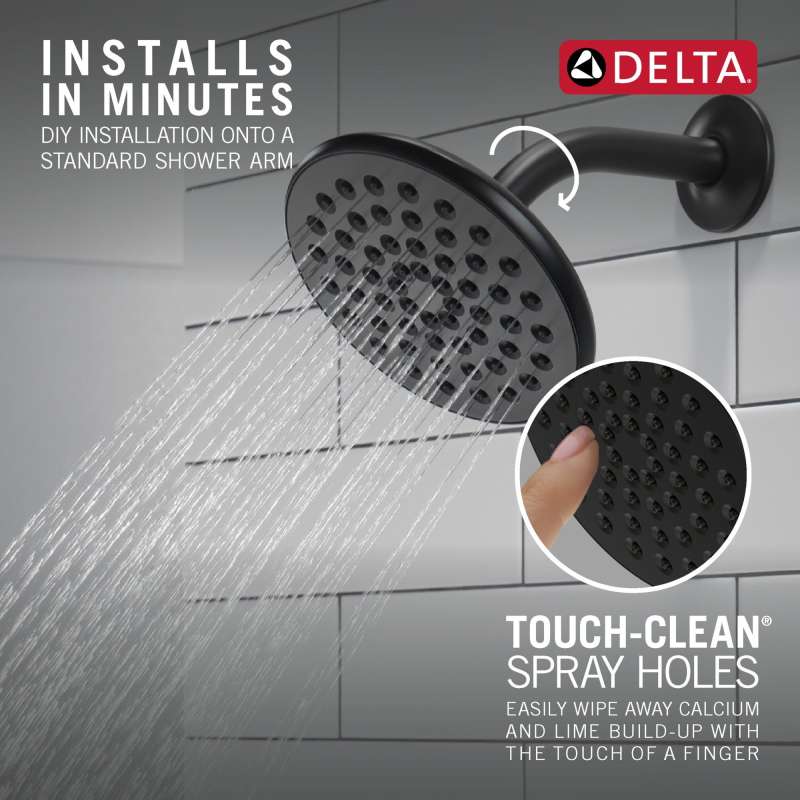Replacing your shower head is one of the quickest, simplest upgrades you can make to your shower. Our shower heads feature a wide range of styles and innovations, and install in less than 20 minutes - no special tools required. While other products may gather unsightly mineral build-up over time, Delta soft rubber Touch-Clean spray holes allow any mineral residue to simply be wiped away for an instantly refreshed look – with no need for soaking or the aid of chemical cleaners. Delta WaterSense labeled showers use at least 20% less water than the industry standard—saving you money without compromising performance.