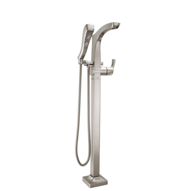 Tesla Single Handle Floor Mount Tub Filler with Hand Shower in Stainless Stainless
