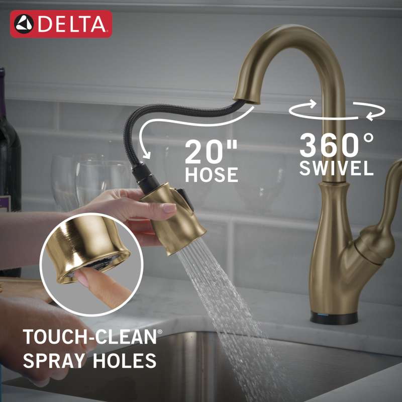 Touch it on. Touch it off. Whether you have two full hands or 10 messy fingers, delta touch2o technology helps keep your faucet clean, even when your hands aren’t. A simple touch anywhere on the spout or handle with your wrist or forearm activates the flow of water at the temperature where your handle is set. The tempsense led light changes color to alert you to the water’s temperature and eliminate any possible surprises or discomfort. Magnatite docking uses a powerful integrated magnet to pull your faucet spray wand precisely into place and hold it there so it stays docked when not in use. Kitchen faucets with touch-clean spray holes allow you to easily wipe away calcium and lime build-up with the touch of a finger. You can install with confidence, knowing that delta faucets are backed by our lifetime limited warranty.