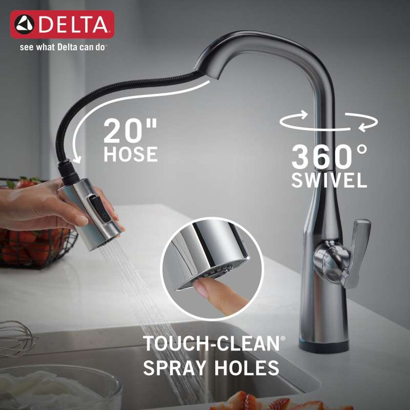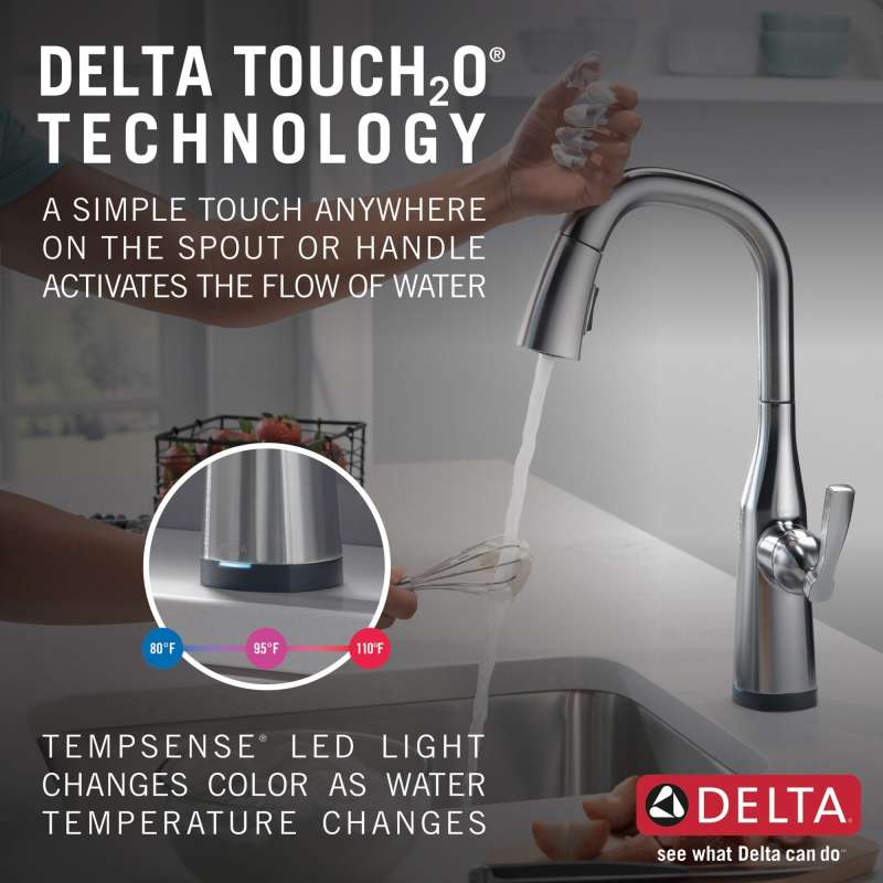 With subtly upturned spout and handles, stryke kitchen collection faucets radiate confidence and include thoughtful innovations to enhance everyday use. Touch it on. Touch it off. Whether you have two full hands or 10 messy fingers, delta touch2o technology helps keep your kitchen faucet clean, even when your hands aren’t. A simple touch anywhere on the spout or handle with your wrist or forearm activates the flow of water at the temperature where your handle is set. The delta tempsense led light changes color to alert you to the water’s temperature and eliminates any possible surprises or discomfort. You can install with confidence, knowing that delta kitchen faucets are backed by our lifetime limited warranty. Electronic parts are backed by our 5-year electronic parts warranty.