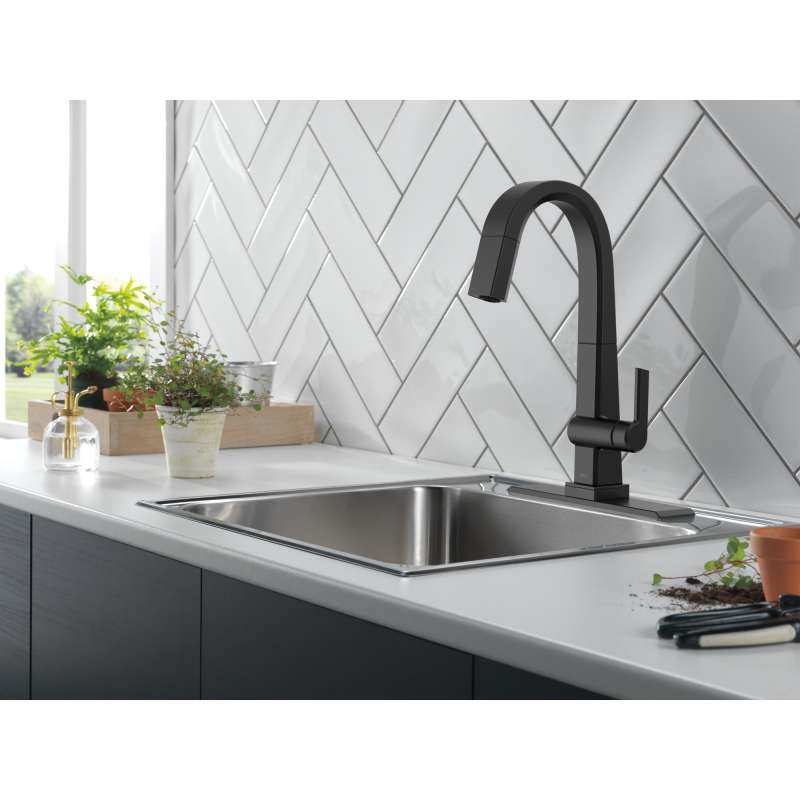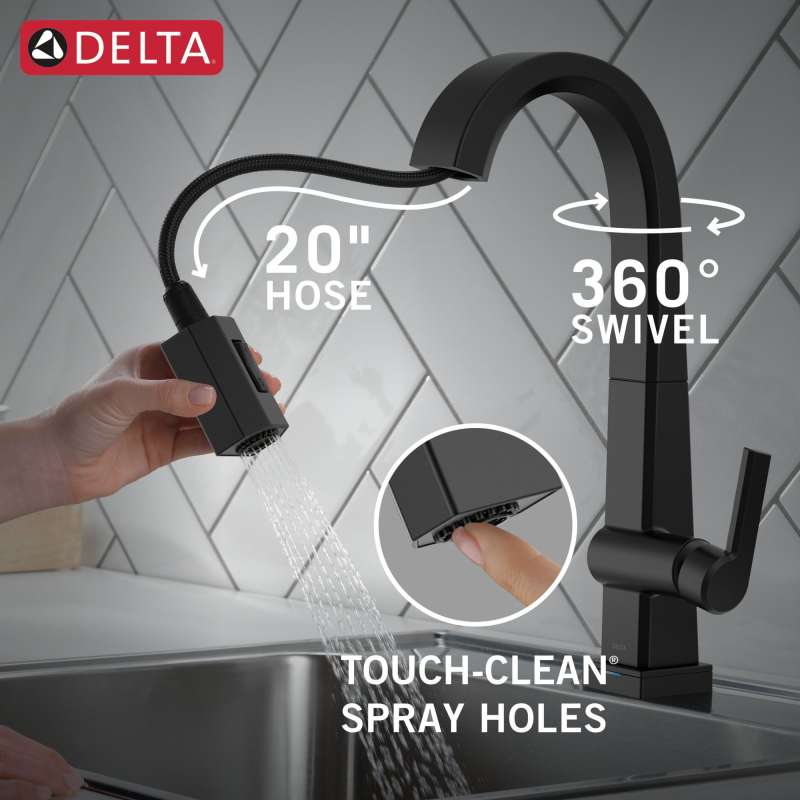 The confident slant of the pivotal collection makes it a striking addition to your kitchen’s contemporary geometry for a look that makes a statement. Touch it on. Touch it off. Whether you have two full hands or 10 messy fingers, delta touch2o technology helps keep your faucet clean, even when your hands aren’t. A simple touch anywhere on the spout or handle with your wrist or forearm activates the flow of water at the temperature where your handle is set. The delta tempsense led light changes color to alert you to the water’s temperature and eliminate any possible surprises or discomfort. Delta magnatite docking uses a powerful integrated magnet to pull your faucet spray wand precisely into place and hold it there so it stays docked when not in use. Delta faucets with diamond seal technology perform like new for life with a patented design which reduces leak points, is less hassle to install and lasts twice as long as the industry standard. You can install with confidence, knowing that delta faucets are backed by our lifetime limited warranty. Electronic parts are backed by our 5-year electronic parts warranty. Industry standard is based on asme a112.18.1 of 500,000 cycles.