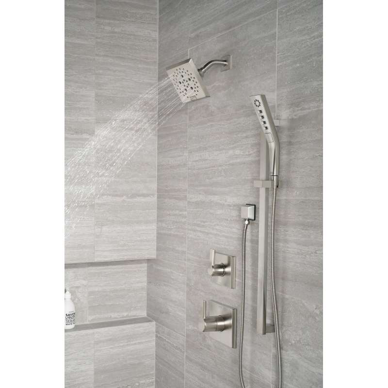 The confident slant of the Pivotal Bath Collection makes it a striking addition to a bathroom's contemporary geometry for a look that makes a statement. This 2-port, 3-setting diverter trim allows for two individual and one shared position for use of your shower components. You can install with confidence, knowing that Delta showers are backed by our Lifetime Limited Warranty.