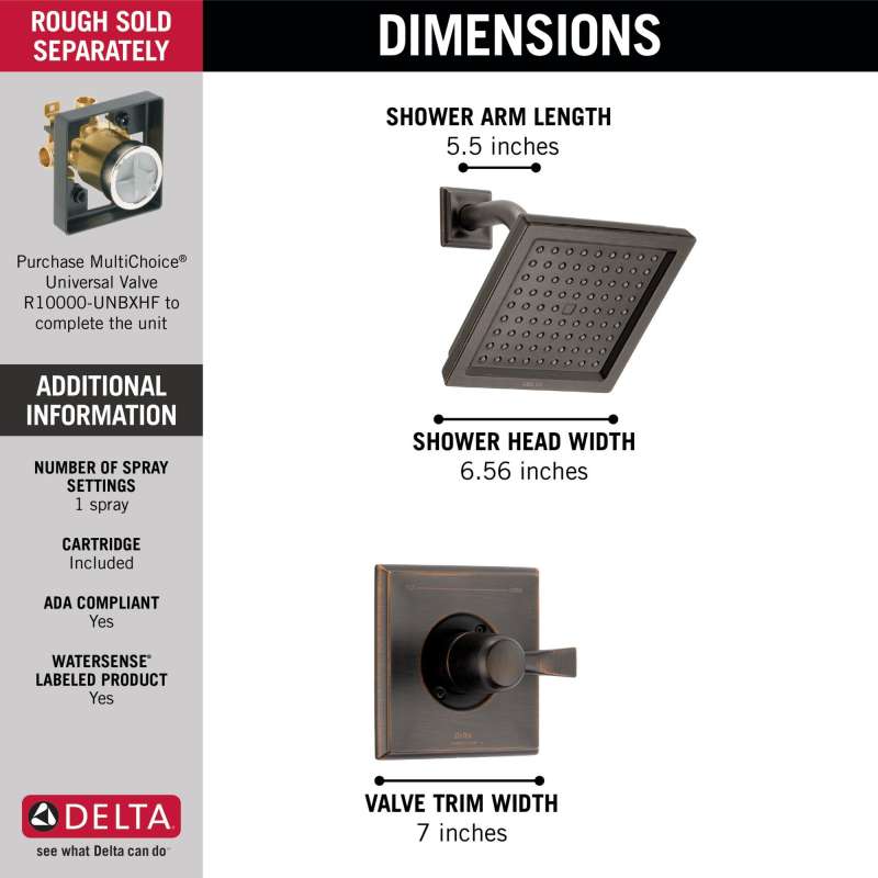 While other products may gather unsightly mineral build-up over time, delta soft rubber touch-clean spray holes allow any mineral residue to simply be wiped away for an instantly refreshed look – with no need for soaking or the aid of chemical cleaners. Delta pressure-balance valves use monitor technology to protect you and your family from sudden temperature changes. An ornate blend of deep, warm tones and subtle highlights give venetian bronze a hand-brushed look that can transform a bath. Offering a smooth contrast to light tones and coordinating well with darker ones, this finish can have a beautiful soothing effect on almost any space. Delta watersense labeled faucets, showers and toilets use at least 20% less water than the industry standard—saving you money without compromising performance.