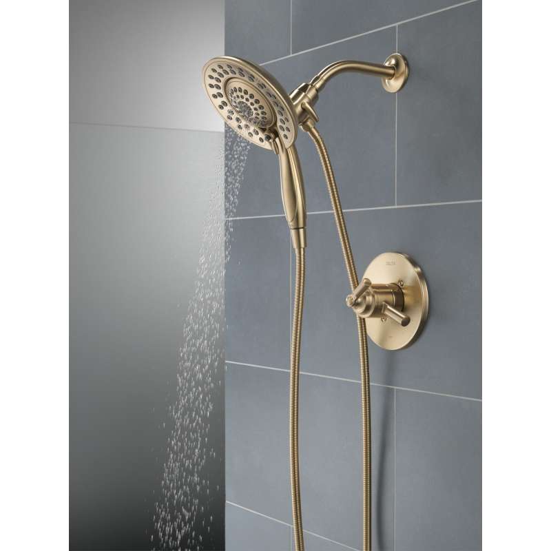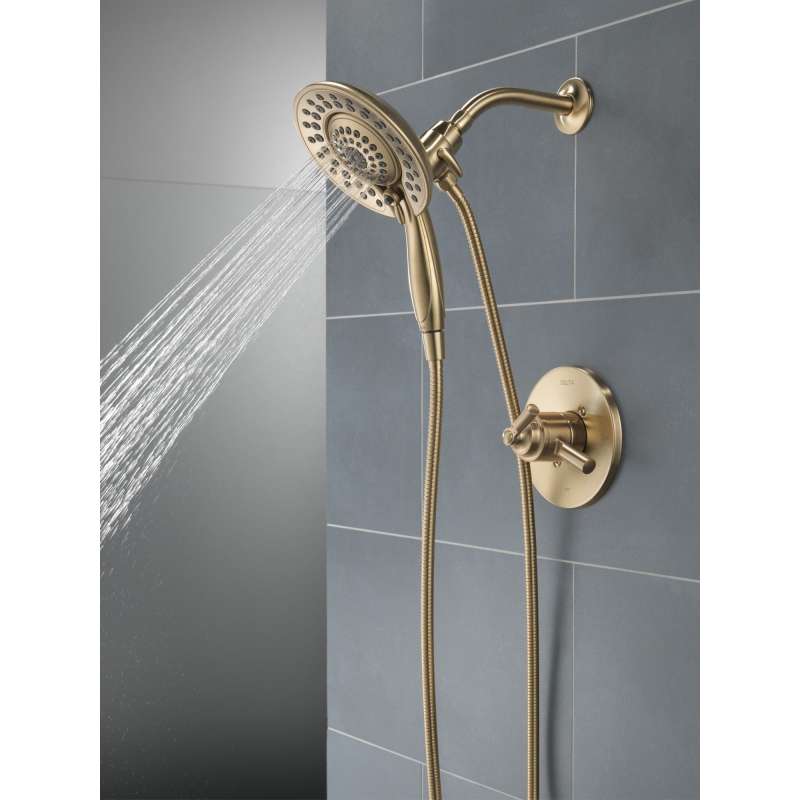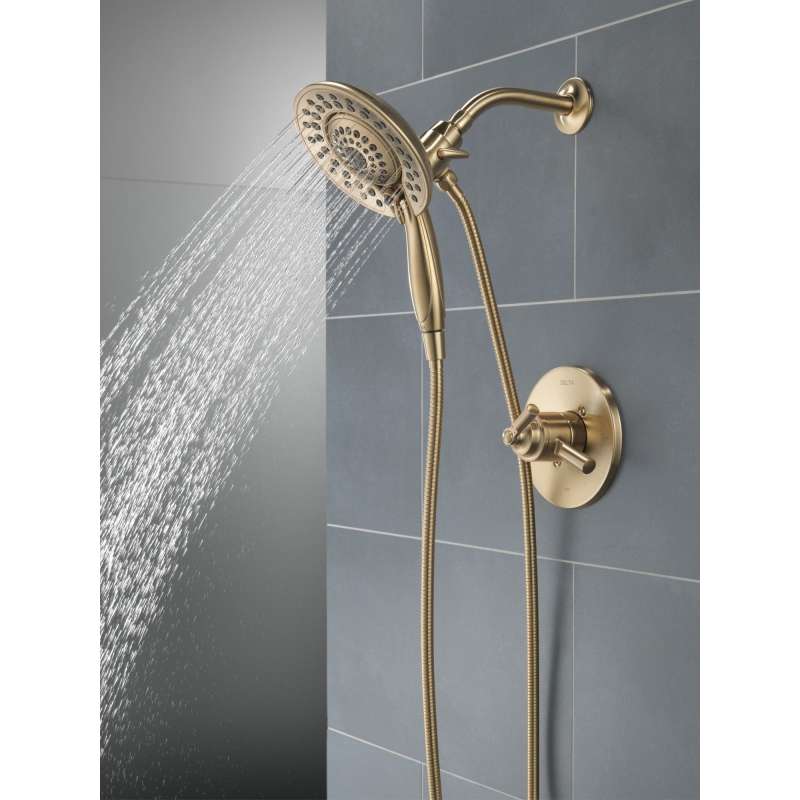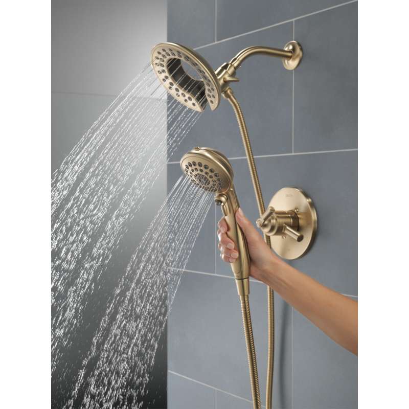The saylor bath collection is an intriguing blend of traditional and contemporary design elements with strong, geometric forms and hints of industrial style in the handles. The delta in2ition two-in-one shower features a detachable hand shower which can be used separately from or simultaneously with the shower head. This integrated dual-functionality gives you maximum flexibility without sacrificing warmth, as you can choose to have water streaming from the shower head only, the hand shower only or both the shower head and hand shower at once. With separate handles for volume and temperature control, this delta tub/shower provides a more refined showering experience. Simply set the water at your preferred temperature and turn the shower on or off with the volume control handle—without interrupting your set temperature. Delta showers with monitor pressure-balance valves are engineered to make sure you don’t experience a sudden and possibly unsafe change in water temperature as a result of running water elsewhere, such as using a dishwasher, flushing a toilet or running a washing machine. While other products may gather unsightly mineral buildup over time, delta soft rubber touch-clean spray holes allow any mineral residue to simply be wiped away for an instantly refreshed look — with no need for soaking or the aid of chemical cleaners. The pause setting gives you ample space for shaving, lathering and other shower tasks, then easily restarts the water with the temperature where you left off. This spray setting helps you conserve water, so you can worry less about depleting your supply of hot water — and you help the environment too. Delta watersense labeled faucets, showers and toilets use at least 20% less water than the industry standard — helping you save water without compromising performance. You can install with confidence, knowing delta products are backed by our lifetime limited warranty.
