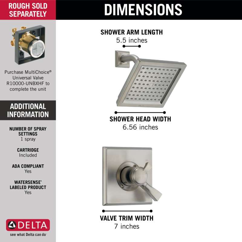 With separate handles for volume and temperature control, this delta tub/shower provides a more refined showering experience. Simply set the water at your preferred temperature and turn the shower on or off with the volume control handle - without interrupting your set temperature. While other products may gather unsightly mineral build-up over time, delta soft rubber touch-clean spray holes allow any mineral residue to simply be wiped away for an instantly refreshed look – with no need for soaking or the aid of chemical cleaners. Delta pressure-balance valves use monitor technology to protect you and your family from sudden temperature changes. This brilliance stainless finish has subtle, warm undertones which make it an excellent match with nickel or stainless steel and is extremely versatile, complementing nearly any look, be it traditional, transitional or contemporary. Delta watersense labeled faucets, showers and toilets use at least 20% less water than the industry standard—saving you money without compromising performance.