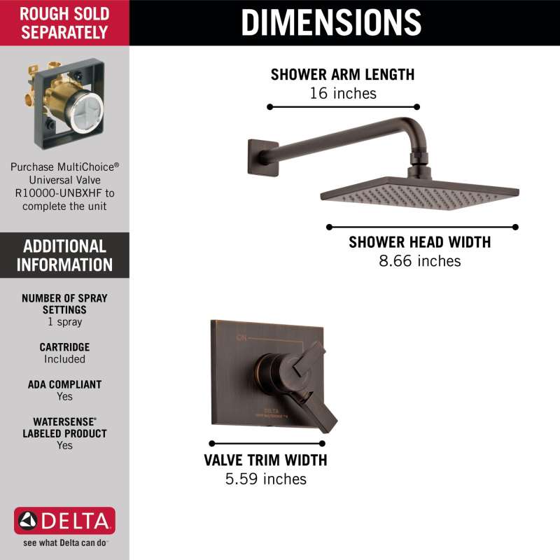 Inspired by the slim lines and graceful arc of a ribbon, the vero bath collection offers a high-end, modern look. With separate handles for volume and temperature control, this delta tub/shower provides a more refined showering experience. Simply set the water at your preferred temperature and turn the shower on or off with the volume control handle - without interrupting your set temperature. While other products may gather unsightly mineral build-up over time, delta soft rubber touch-clean spray holes allow any mineral residue to simply be wiped away for an instantly refreshed look – with no need for soaking or the aid of chemical cleaners. Delta pressure-balance valves use monitor technology to protect you and your family from sudden temperature changes. An ornate blend of deep, warm tones and subtle highlights give venetian bronze a hand-brushed look that can transform a bath. Offering a smooth contrast to light tones and coordinating well with darker ones, this finish can have a beautiful soothing effect on almost any space.