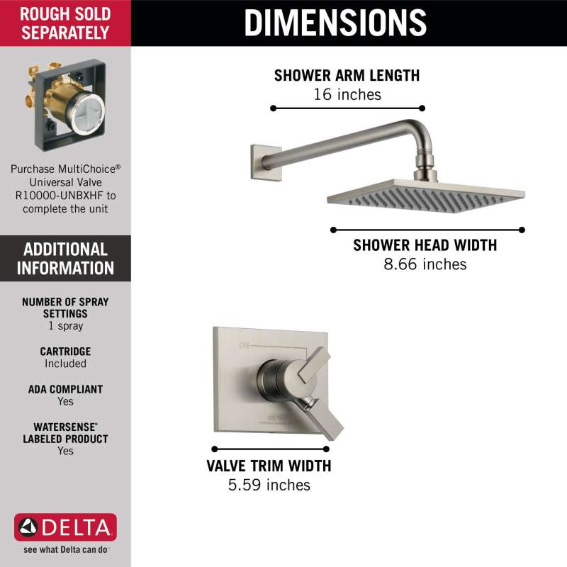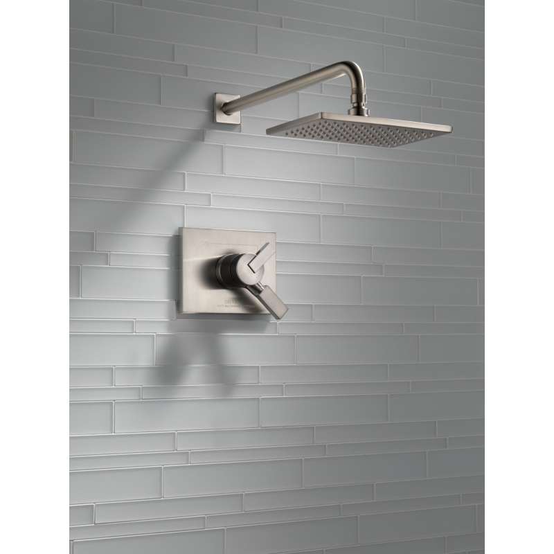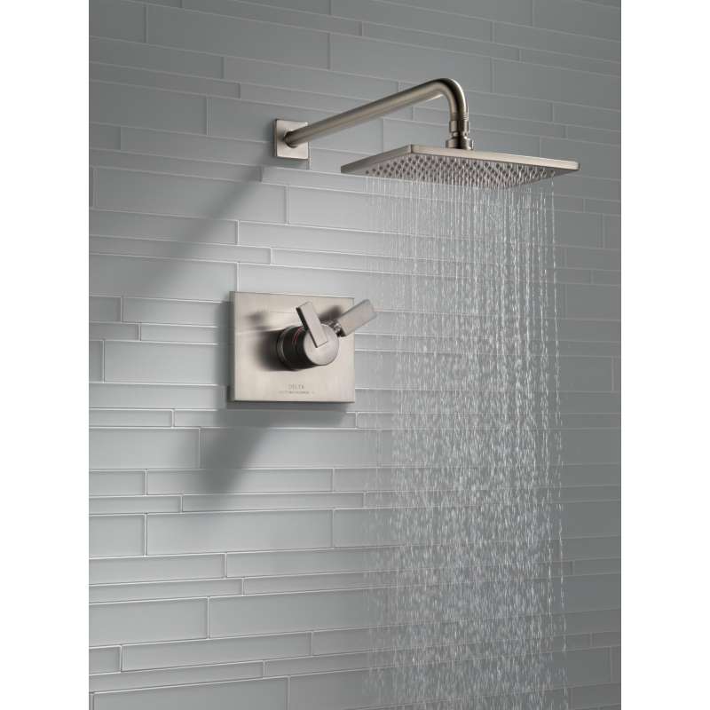 Inspired by the slim lines and graceful arc of a ribbon, the vero bath collection offers a high-end, modern look. With separate handles for volume and temperature control, this delta tub/shower provides a more refined showering experience. Simply set the water at your preferred temperature and turn the shower on or off with the volume control handle - without interrupting your set temperature. While other products may gather unsightly mineral build-up over time, delta soft rubber touch-clean spray holes allow any mineral residue to simply be wiped away for an instantly refreshed look – with no need for soaking or the aid of chemical cleaners. Delta pressure-balance valves use monitor technology to protect you and your family from sudden temperature changes. Brilliance finishes are durable, long-lasting and guaranteed not to corrode, tarnish or discolor. This brilliance stainless finish has subtle, warm undertones which make it an excellent match with nickel or stainless steel and is extremely versatile, complementing nearly any look, be it traditional, transitional or contemporary.