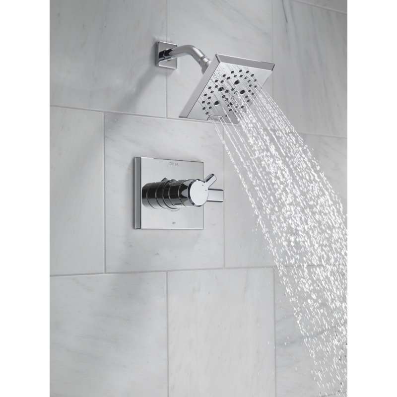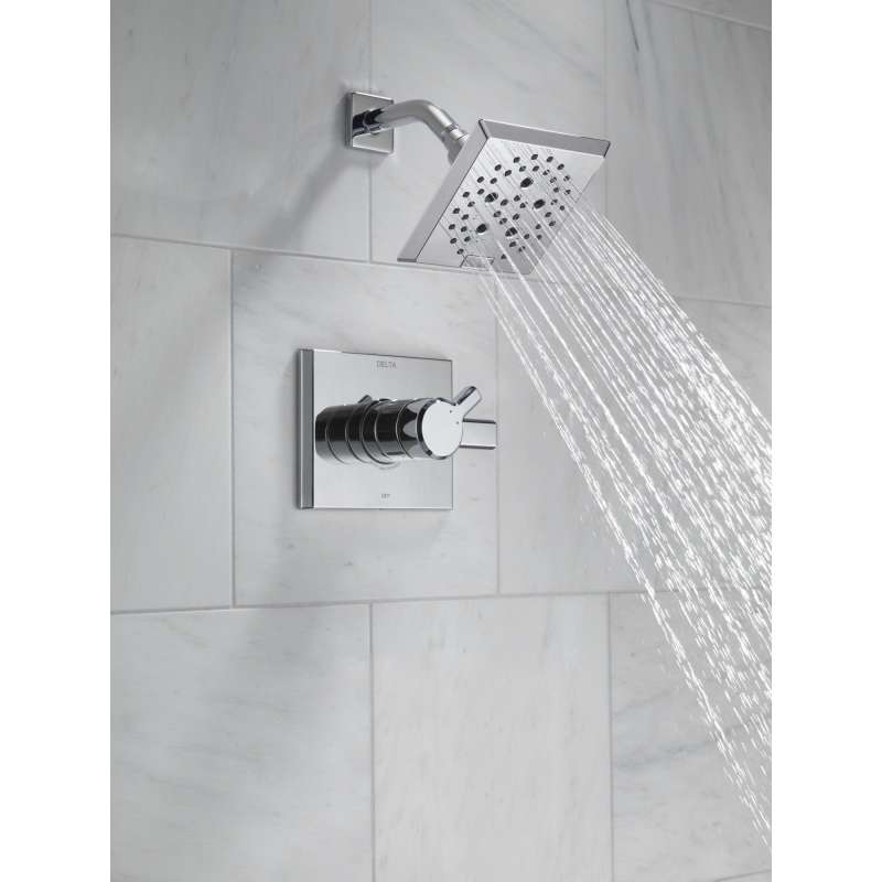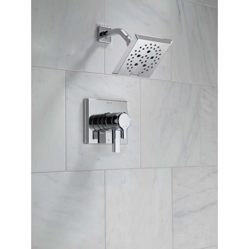 The confident slant of the pivotal bath collection makes it a striking addition to a bathroom's contemporary geometry for a look that makes a statement. Delta showers with monitor pressure-balance valves are engineered to make sure you don’t experience a sudden and possibly unsafe change in water temperature as a result of running water elsewhere, such as using a dishwasher, flushing a toilet or running a washing machine. With separate handles for volume and temperature control, this delta shower provides a more refined showering experience. Simply set the water at your preferred temperature and turn the shower on or off with the volume control handle — without interrupting your set temperature. You can install with confidence, knowing that delta showers are backed by our lifetime limited warranty.