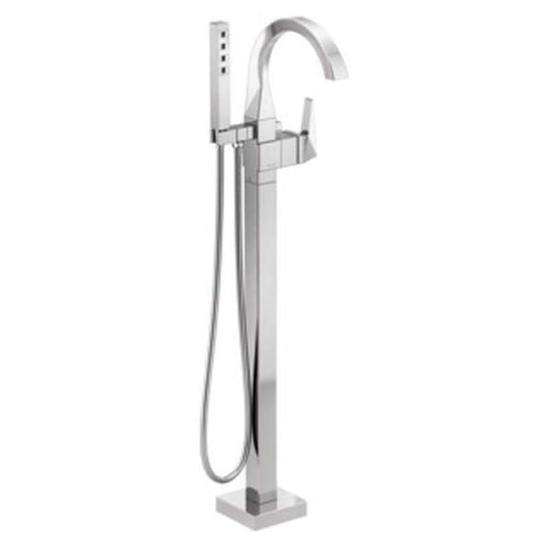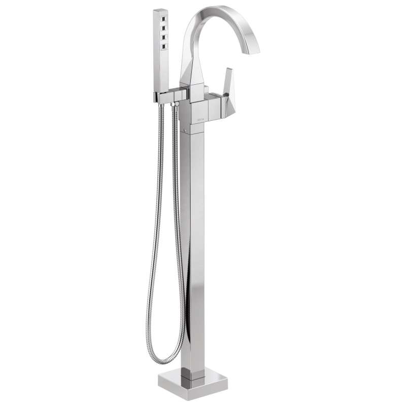 The prismatic faceting of the Trillian Bath Collection is an evolution of modern style that creates an edgy look which catches the light as well as the eye. Make a statement in your bath with a floor mount tub filler — an elegant complement to any freestanding bathtub. The included hand shower makes this a versatile addition to your bath, perfect for rinsing off, washing loved ones and pets, or keeping your tub clean. Our WaterSense labeled hand showers use at least 20% less water than the industry standard — helping you save water without compromising performance. You can install with confidence, knowing that Delta faucets are backed by our Lifetime Limited Warranty.