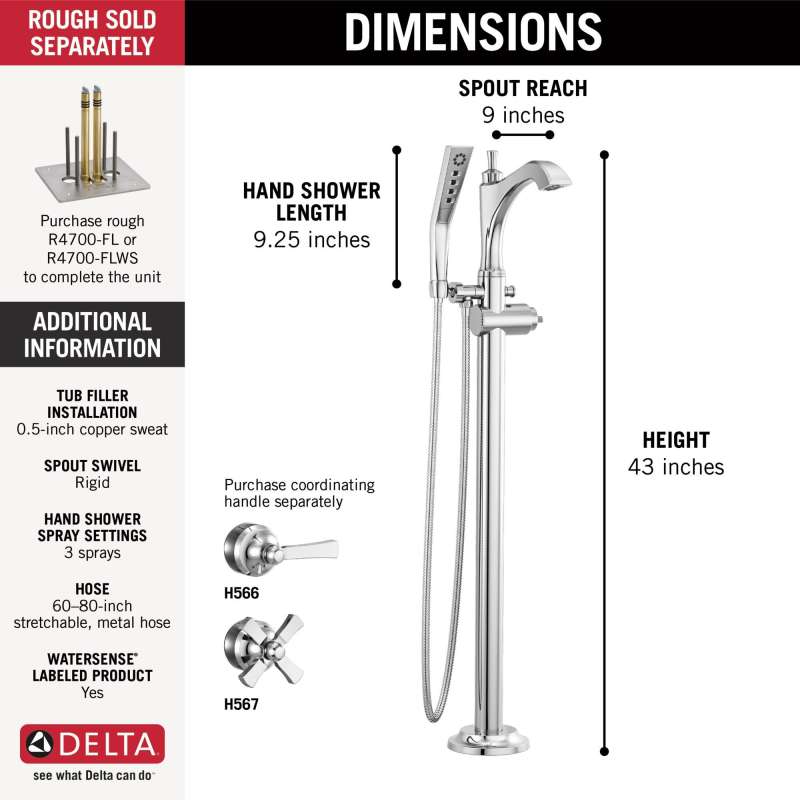 The Dorval Bathroom Collection diverges from conventional expectations with regal accents and a powerful design that commands your attention. Inspired by the feminine lines of French architecture and the regal stature of German castles, the Dorval Bath Collection balances grace and power in this modern take on new traditional design. Make a statement in your bath with a floor mount tub filler - an elegant complement to any freestanding bathtub.