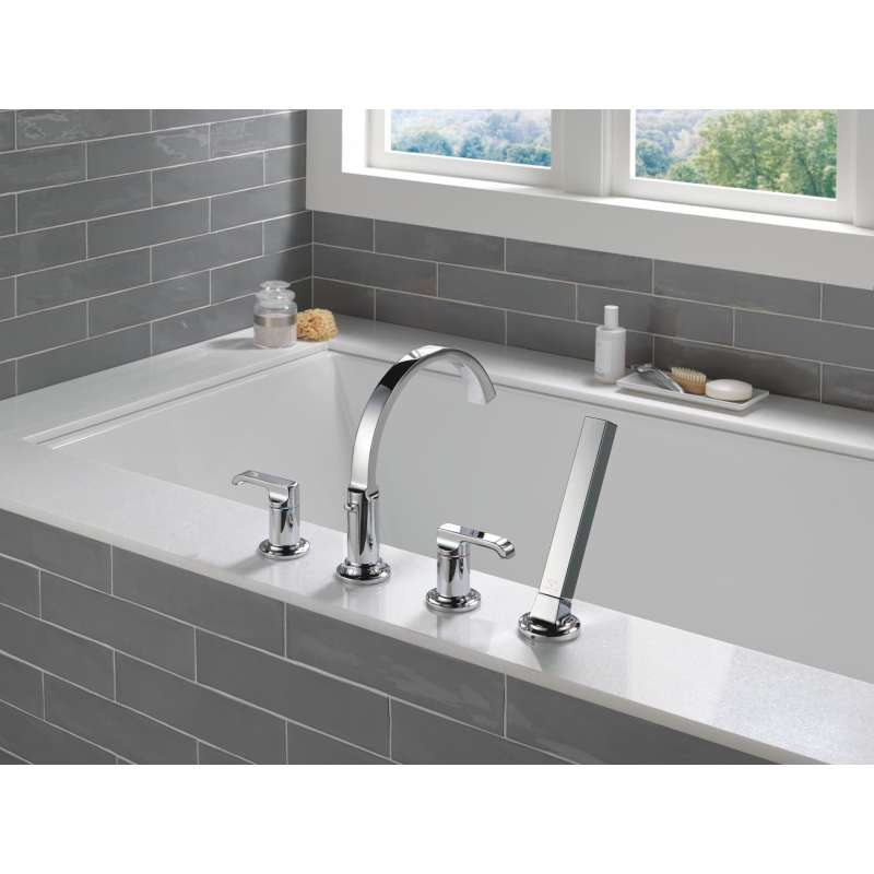 Familiar geometries and subtle curves in the Tetra Bath Collection combine to bring a sleek, architectural look and feel to the bath. Delta Lumicoat Finishes are guaranteed to resist water spots and mineral buildup and easily wipe clean without the need for cleaners or chemicals. The ultra-sleek surface repels liquids, resisting water spots and staying cleaner longer, so your faucet’s most commonly touched areas stay beautiful. Using advanced technology, H2Okinetic showers sculpt water into a unique wave pattern, giving you 3X the coverage of a standard shower head and resulting in more coverage, more warmth and more intensity for a truly drenching shower experience. Complete your bath with a beautifully designed Delta Roman tub faucet, meticulously crafted to turn heads and enhance your experience. Meld industrial design to your personal taste with coordinating, customizable handles from the Tetra Bath Collection. WaterSense labeled faucets, showers and toilets use at least 20% less water than the industry standard — helping you save water without compromising performance. You can install with confidence, knowing Delta products are backed by our Lifetime Limited Warranty.