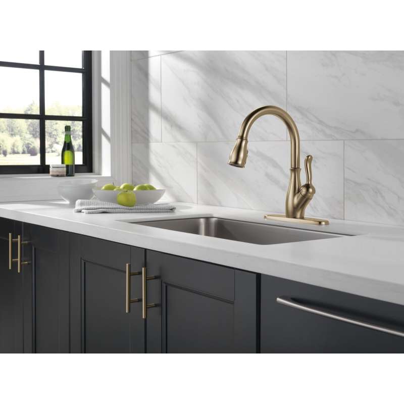 Delta magnatite docking uses a powerful integrated magnet to pull your faucet spray wand precisely into place and hold it there so it stays docked when not in use. Delta shieldspray technology cleans with laser-like precision while containing mess and splatter. A concentrated jet powers away stubborn messes while an innovative shield of water contains splatter and clears off the mess, so you can spend less time soaking, scrubbing and shirt swapping. Delta faucets with diamond seal technology perform like new for life with a patented design which reduces leak points, is less hassle to install and lasts twice as long as the industry standard*. Kitchen faucets with touch-clean spray holes allow you to easily wipe away calcium and lime build-up with the touch of a finger. You can install with confidence, knowing that delta faucets are backed by our lifetime limited warranty.