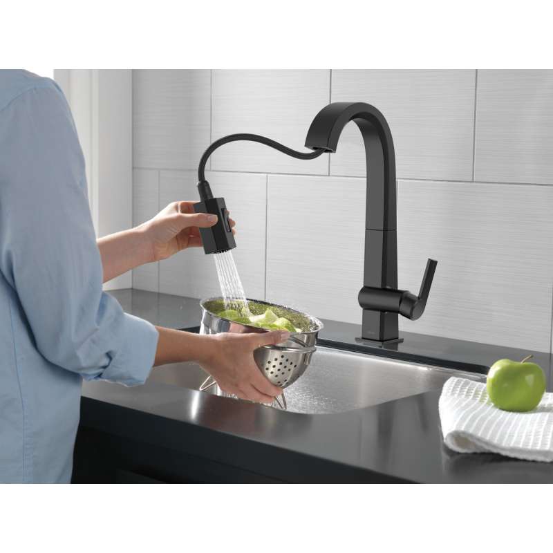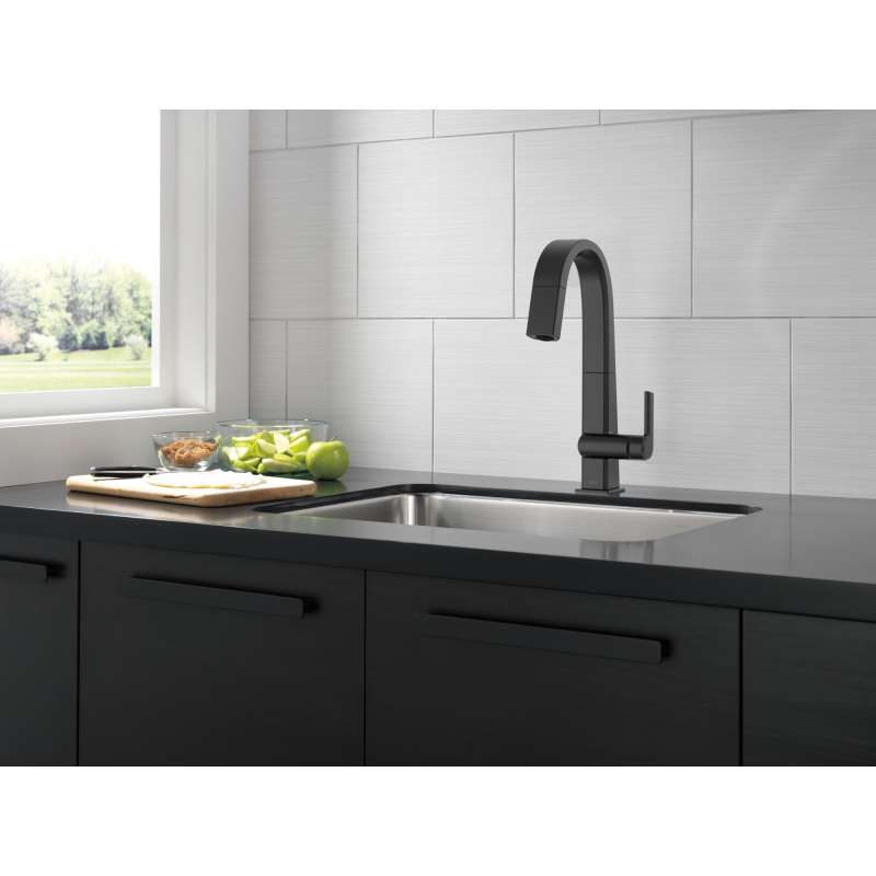 The confident slant of the pivotal collection makes it a striking addition to your kitchen’s contemporary geometry for a look that makes a statement. Delta magnatite docking uses a powerful integrated magnet to pull your faucet spray wand precisely into place and hold it there so it stays docked when not in use. Delta faucets with diamond seal technology perform like new for life with a patented design which reduces leak points, is less hassle to install and lasts twice as long as the industry standard. You can install with confidence, knowing that delta faucets are backed by our lifetime limited warranty. Industry standard is based on asme a112.18.1 of 500,000 cycles.
