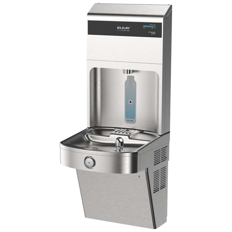 Elkay Pro Filtration Vandal-Resistant Connected Bottle Filling Station&Sgl Ada Cooler Refrig Total Pfas* + Lead Rd Ss, LVRC8WSPRO-FLP4 Stainless Steel