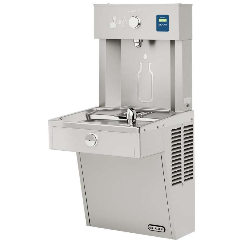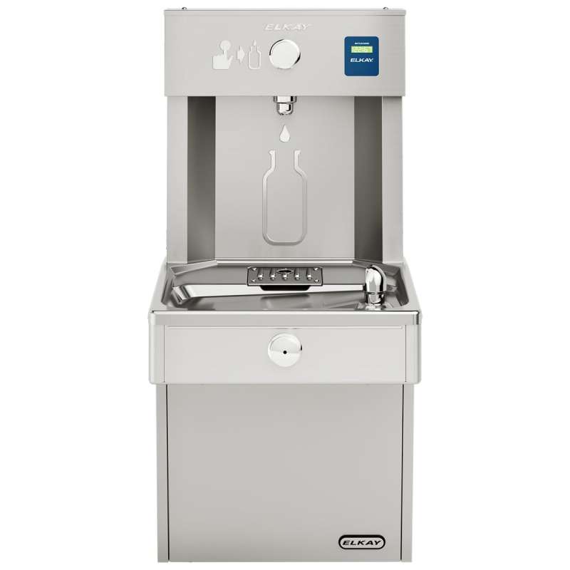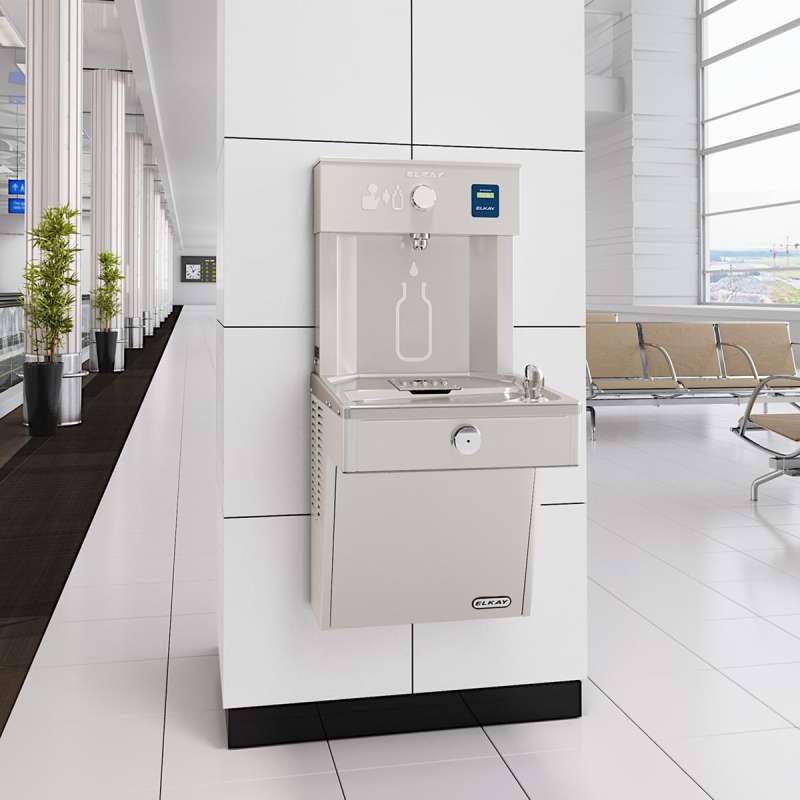 The Elkay EZH2O Bottle Filling Station delivers a clean quick water bottle fill and enhances sustainability by minimizing our dependency on disposable plastic bottles. Vandal-resistant cooler and bottle filling station in a consolidated space saving ADA compliant design. Pushbutton activation with automatic 20-second shut-off timer on bottle filler.