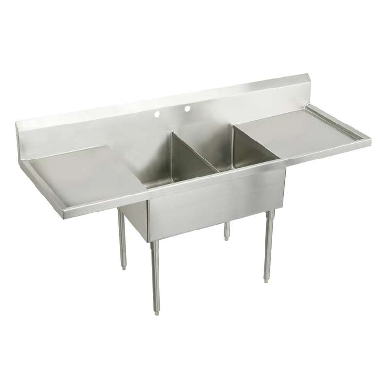 Sturdibilt Stainless Steel 96" X 27-1/2" X 14" Floor Mount Double Compartment 2-Hole Scullery Sink W/L&R Drainboards, SS8248LR2