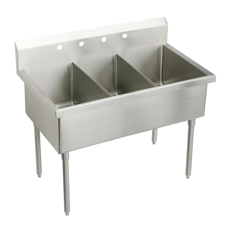 Weldbilt Stainless Steel 57" X 27-1/2" X 14" Floor Mount Triple Compartment Scullery Sink, WNSF83544