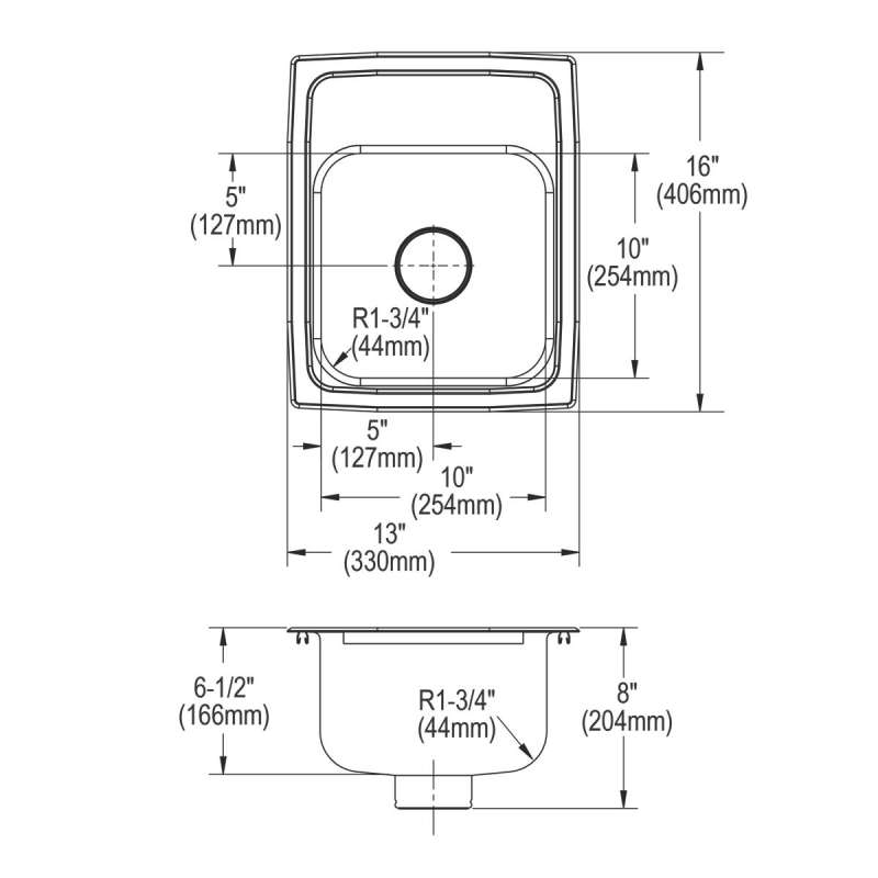 Lustertone Classic Stainless Steel 13" X 16" X 6-1/2" 3-Hole Single Bowl Drop-In Ada Sink With Perfect Drain(R) And Quick-Clip, LRADQ131665PD3 Lustrous Satin