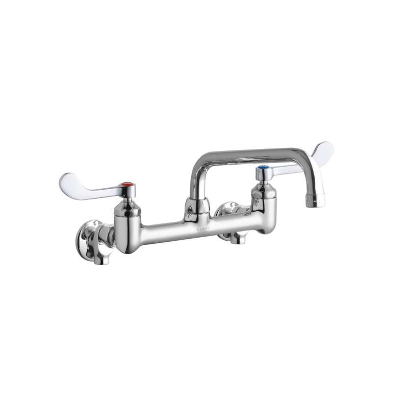 Foodservice 8" Centerset Wall Mount Faucet With 8" Tube Spt 4" Wristblade Handles 1/2" Offset Inlets+Stop, LK940TS08T4S
