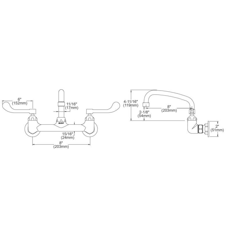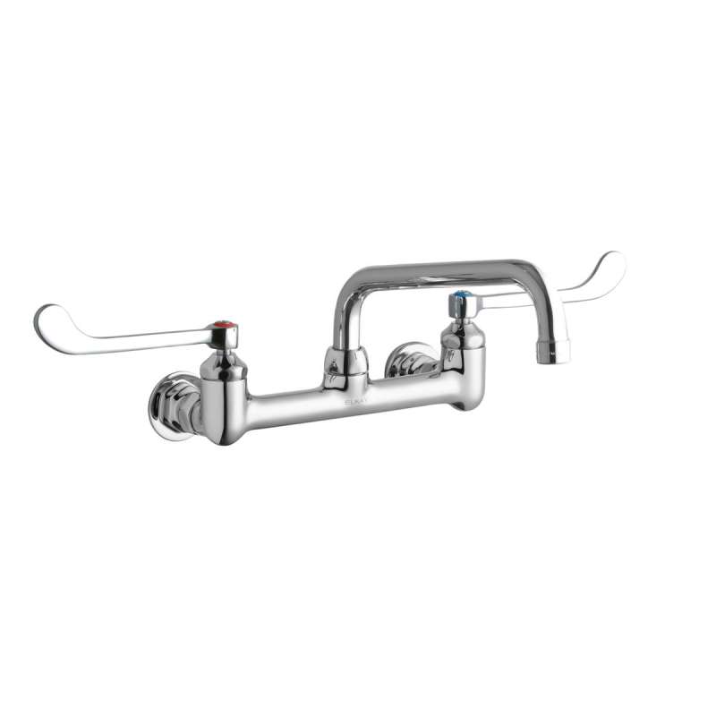 Foodservice 8" Centerset Wall Mount Faucet With 8" Tube Spout 6" Wristblade Handles 1/2" Offset Inlet Chrome, LK940TS08T6H Chrome