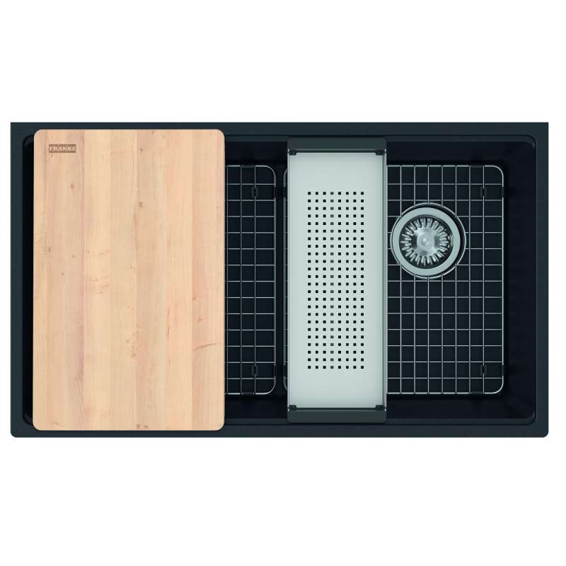 • Franke Maris Undermount 33-In X 19.31-In Fragranite Single Bowl Workcenter Kitchen Sink In Onyx Onyx