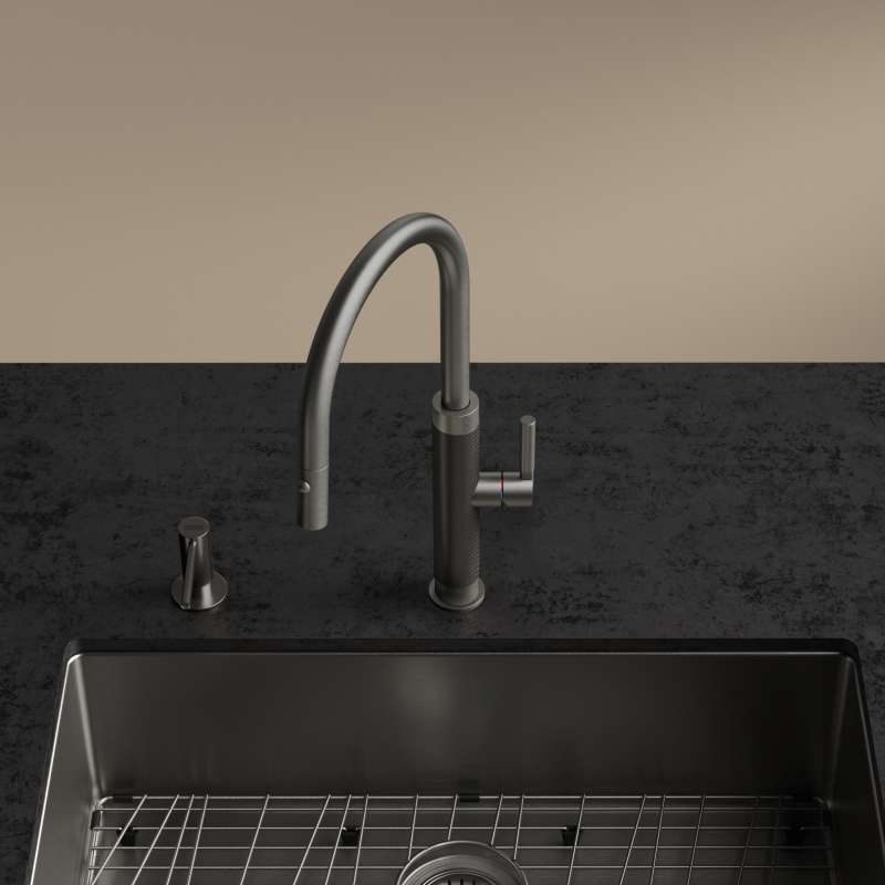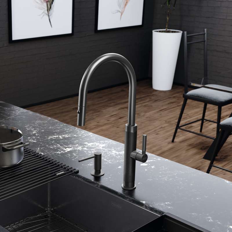 • Franke Mythos Masterpiece 18.3-Inch Single Handle Pull-Down Kitchen Faucet In Anthracite Anthracite